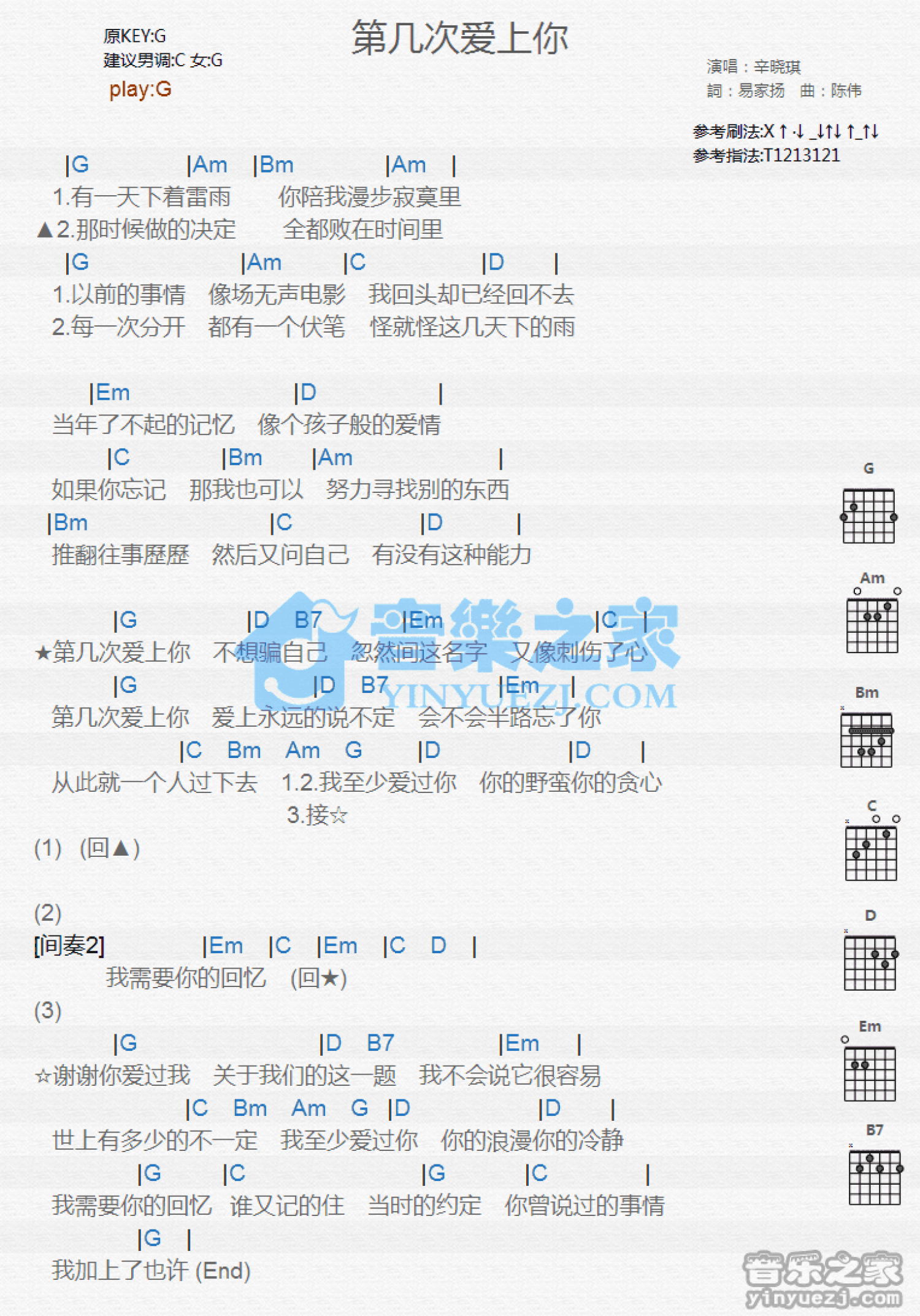 第几次爱上你吉他谱 - 辛晓琪 - G调吉他弹唱谱 - 和弦谱
