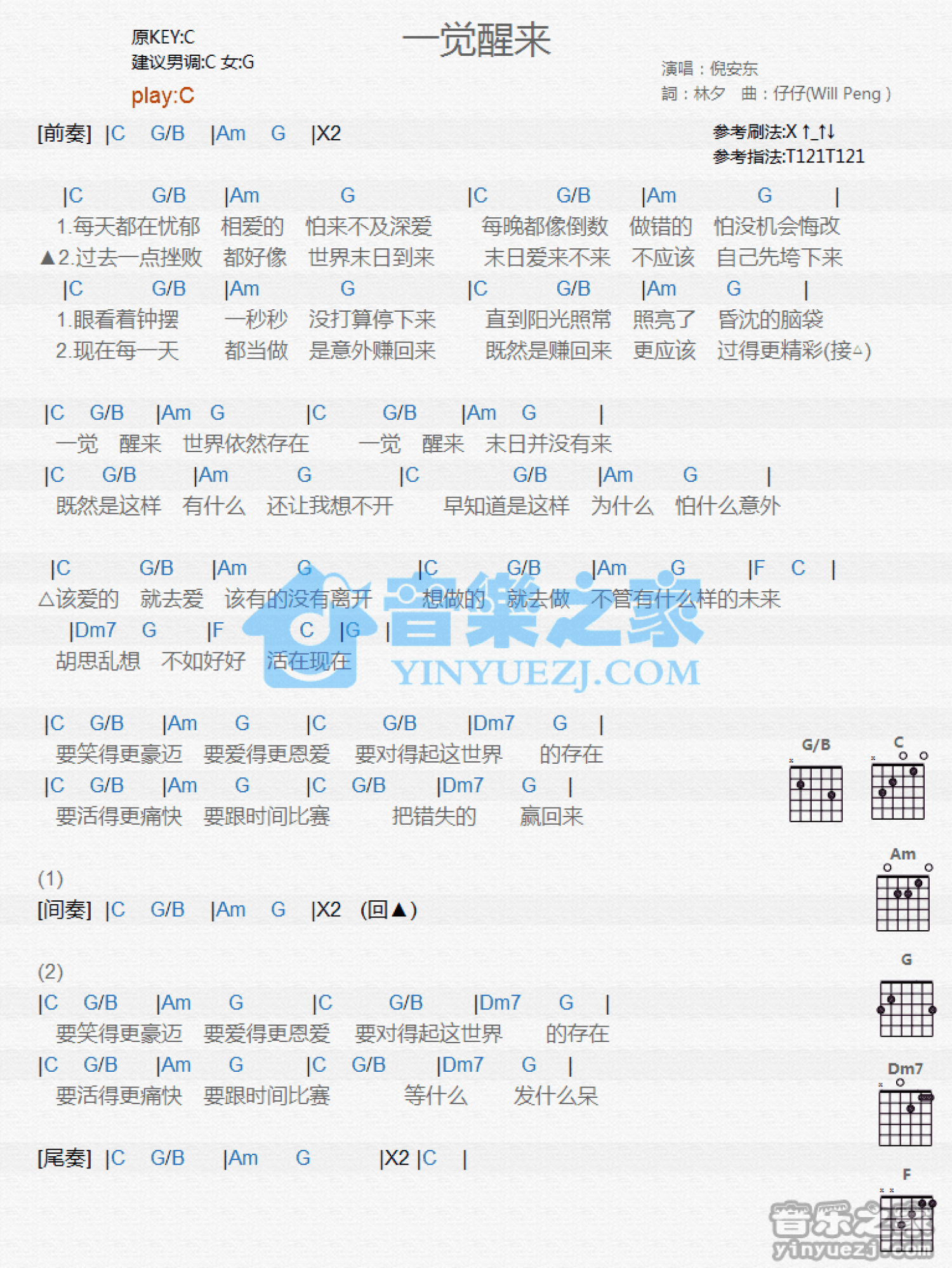 一觉醒来吉他谱 - 倪安东 - C调吉他弹唱谱 - 和弦谱