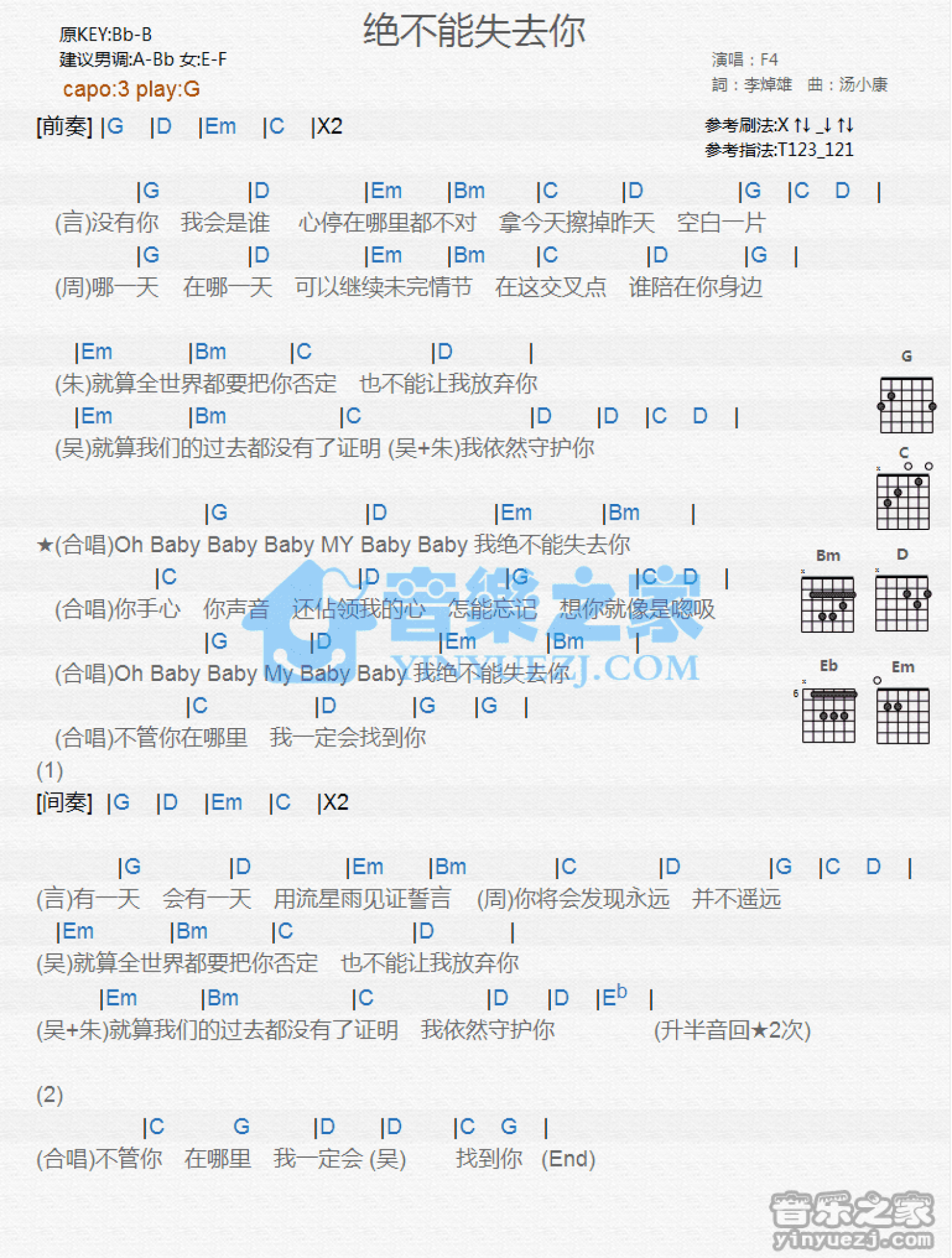 绝不能失去你吉他谱 - F4 - G调吉他弹唱谱 - 和弦谱