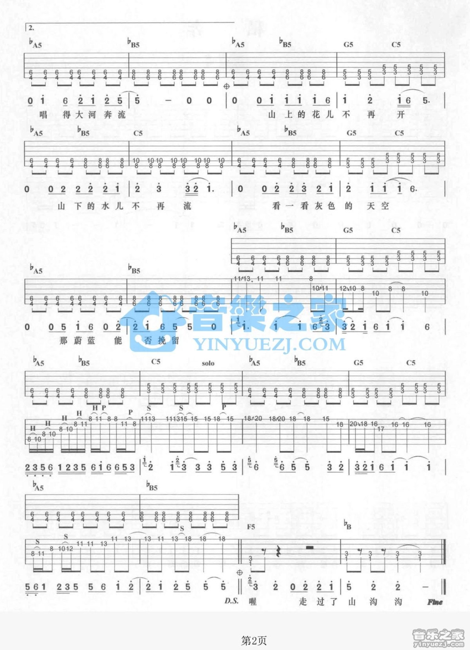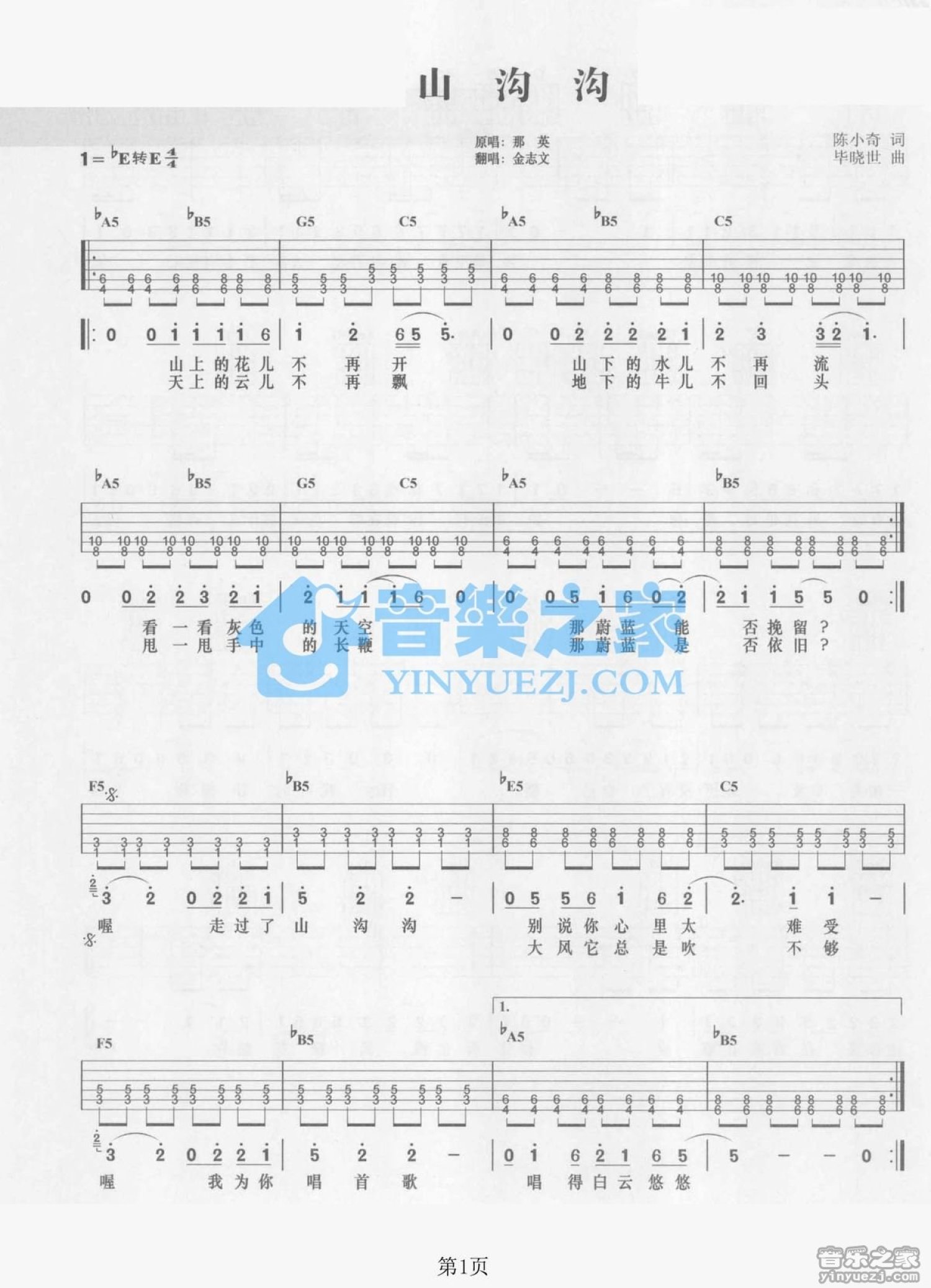 曲谱介绍: 好声音bE调版金志文《山沟沟》吉他弹唱六线谱