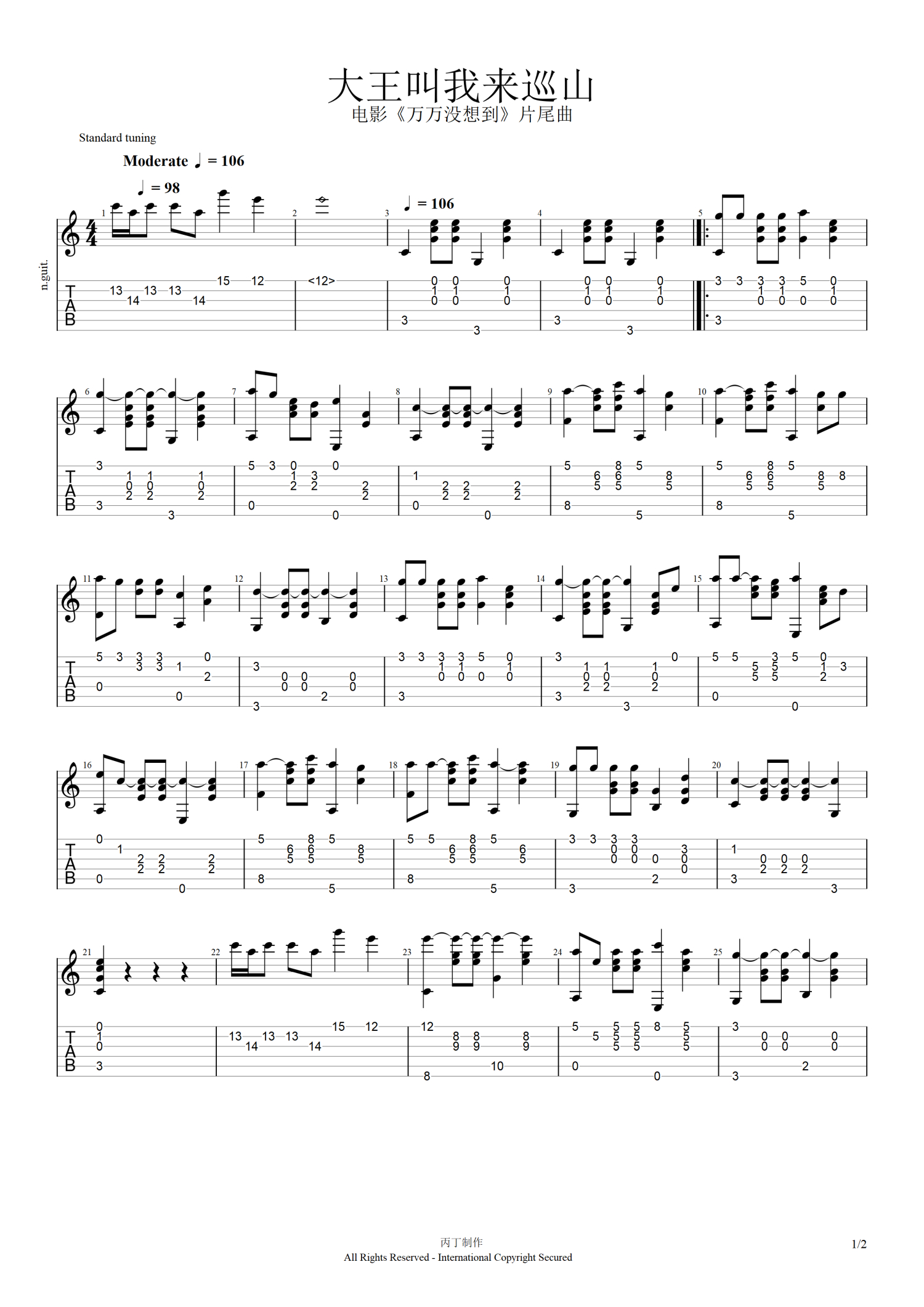 当前位置:琴谱网>吉他独奏>大王叫我来巡山