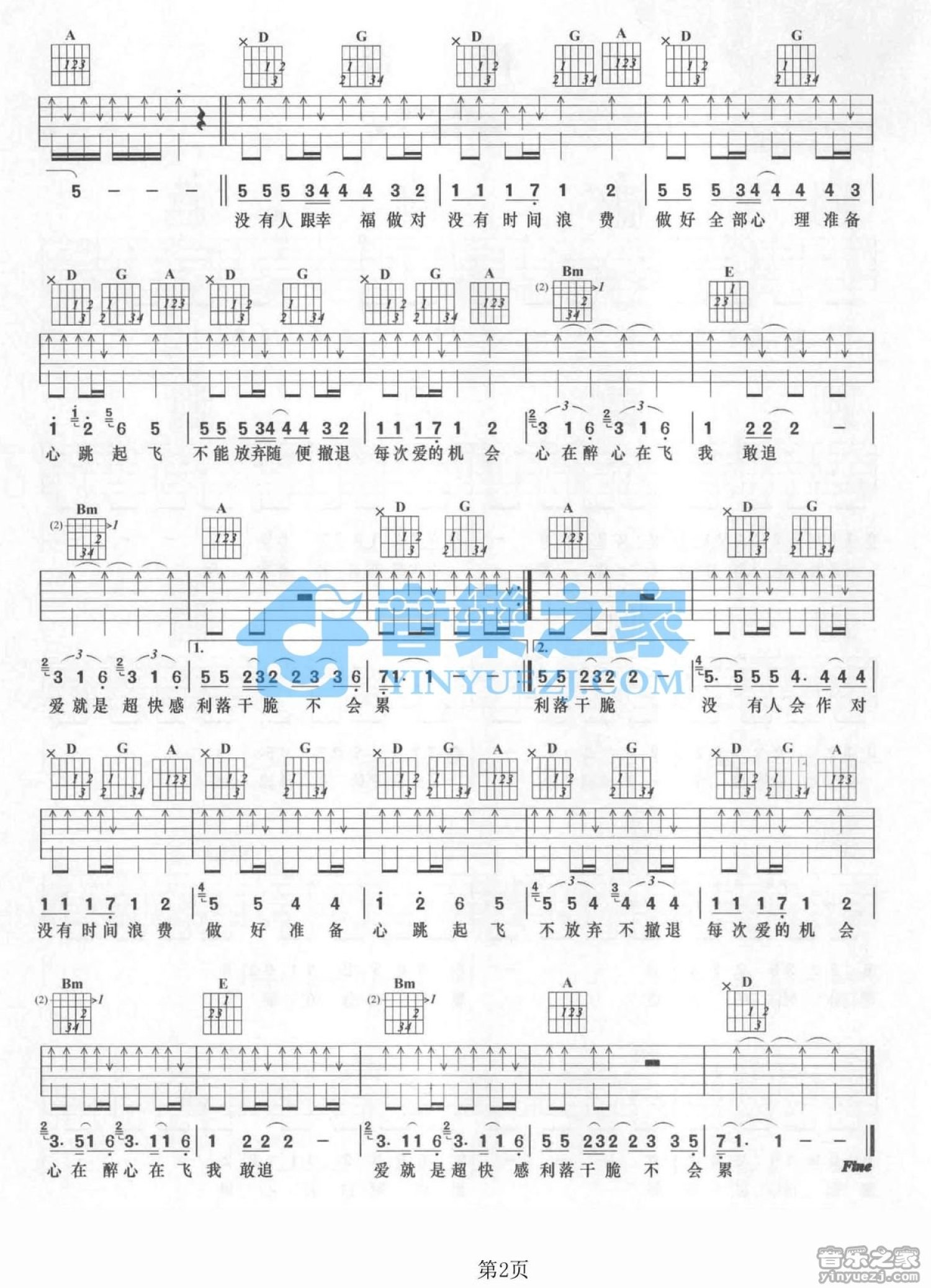 曲谱介绍: 好声音D调版 汪洋/伍佳丽《超快感》吉他弹唱六线谱
