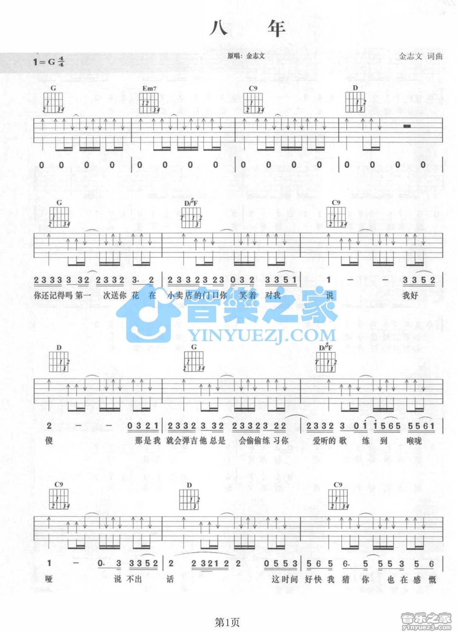 八年吉他谱 - 金志文 - G调吉他弹唱谱