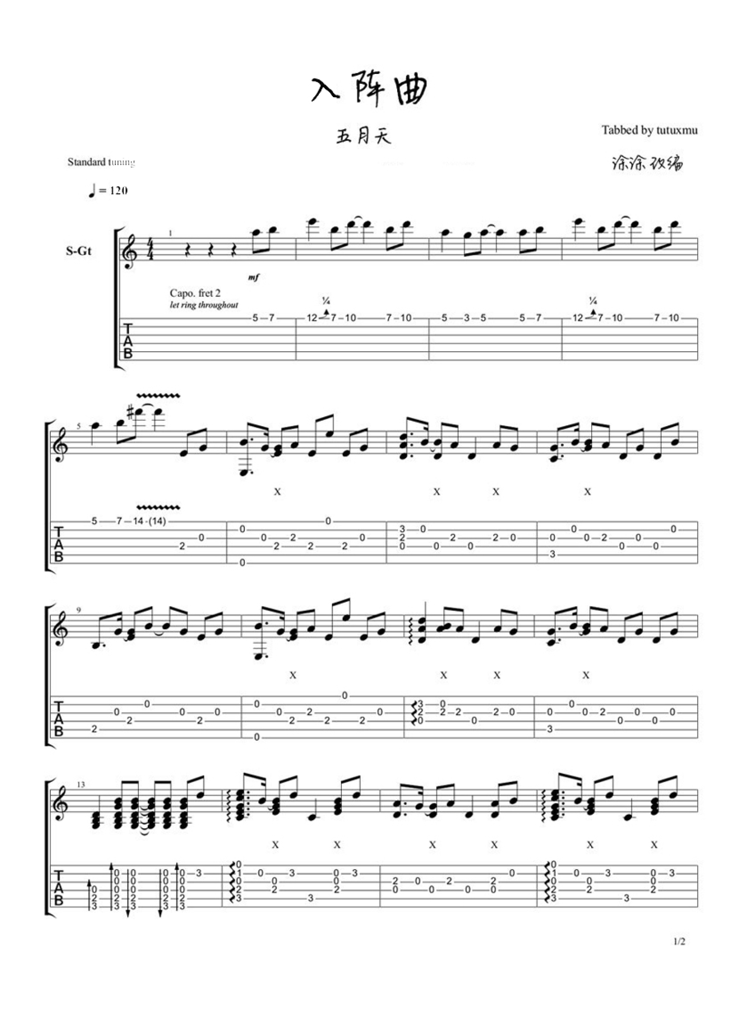 入阵曲吉他谱 - 五月天 - 吉他独奏谱