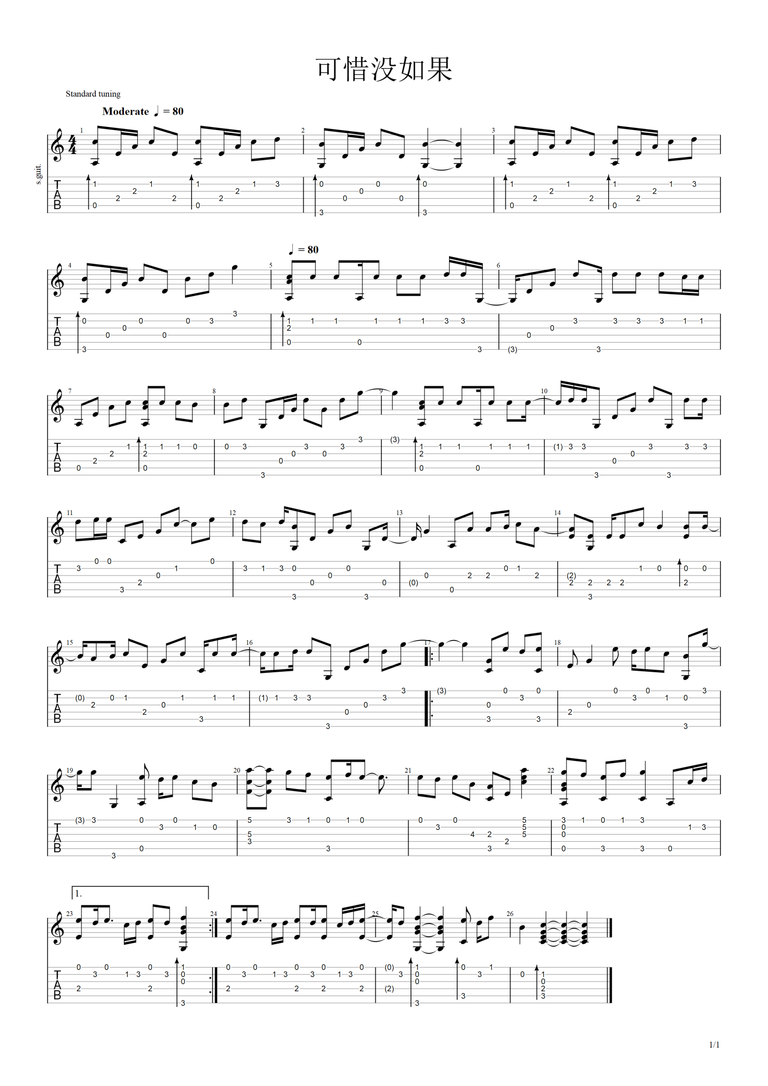 可惜没如果吉他谱 - 林俊杰 - 吉他独奏谱