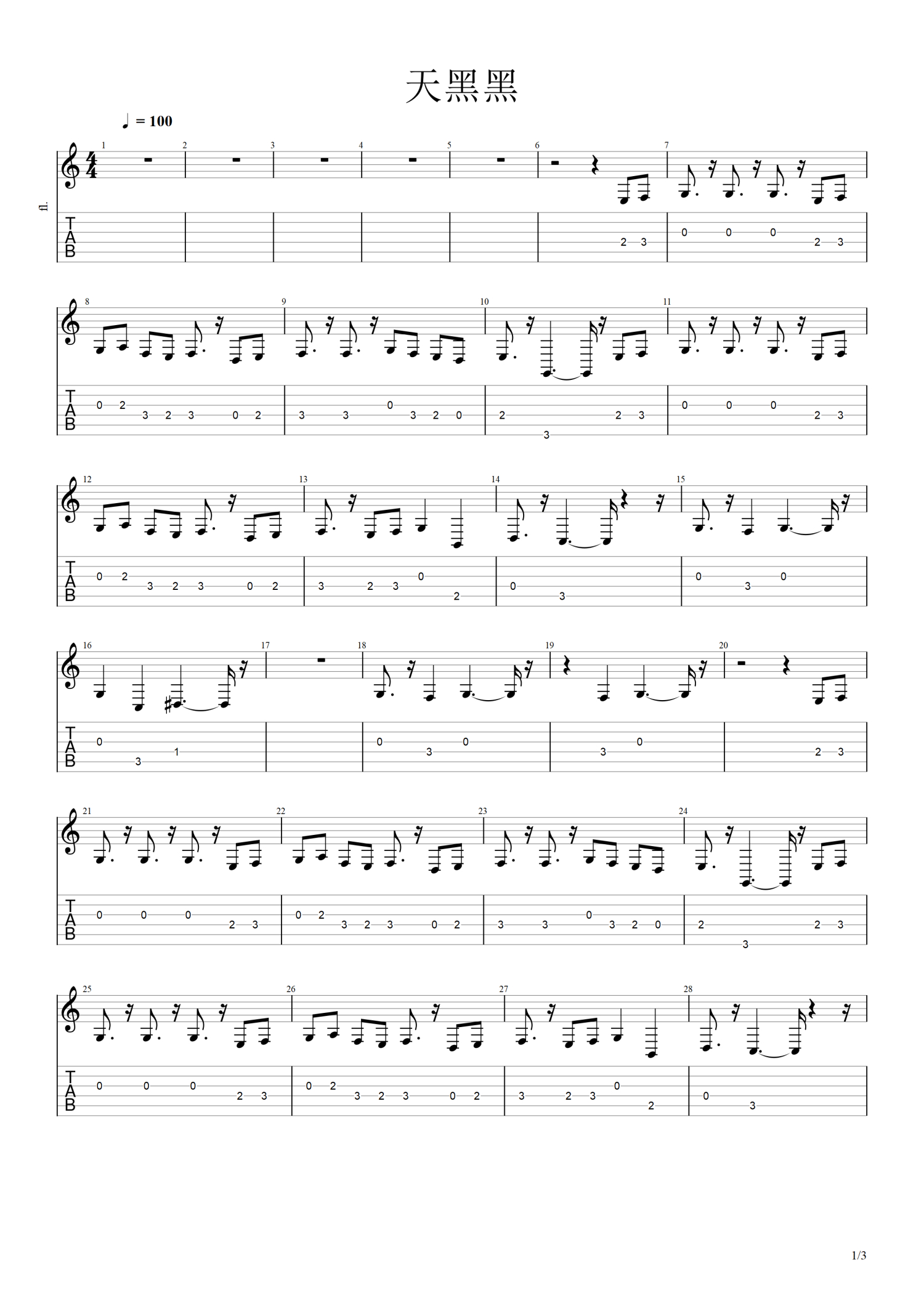 当前位置:琴谱网>吉他独奏>天黑黑