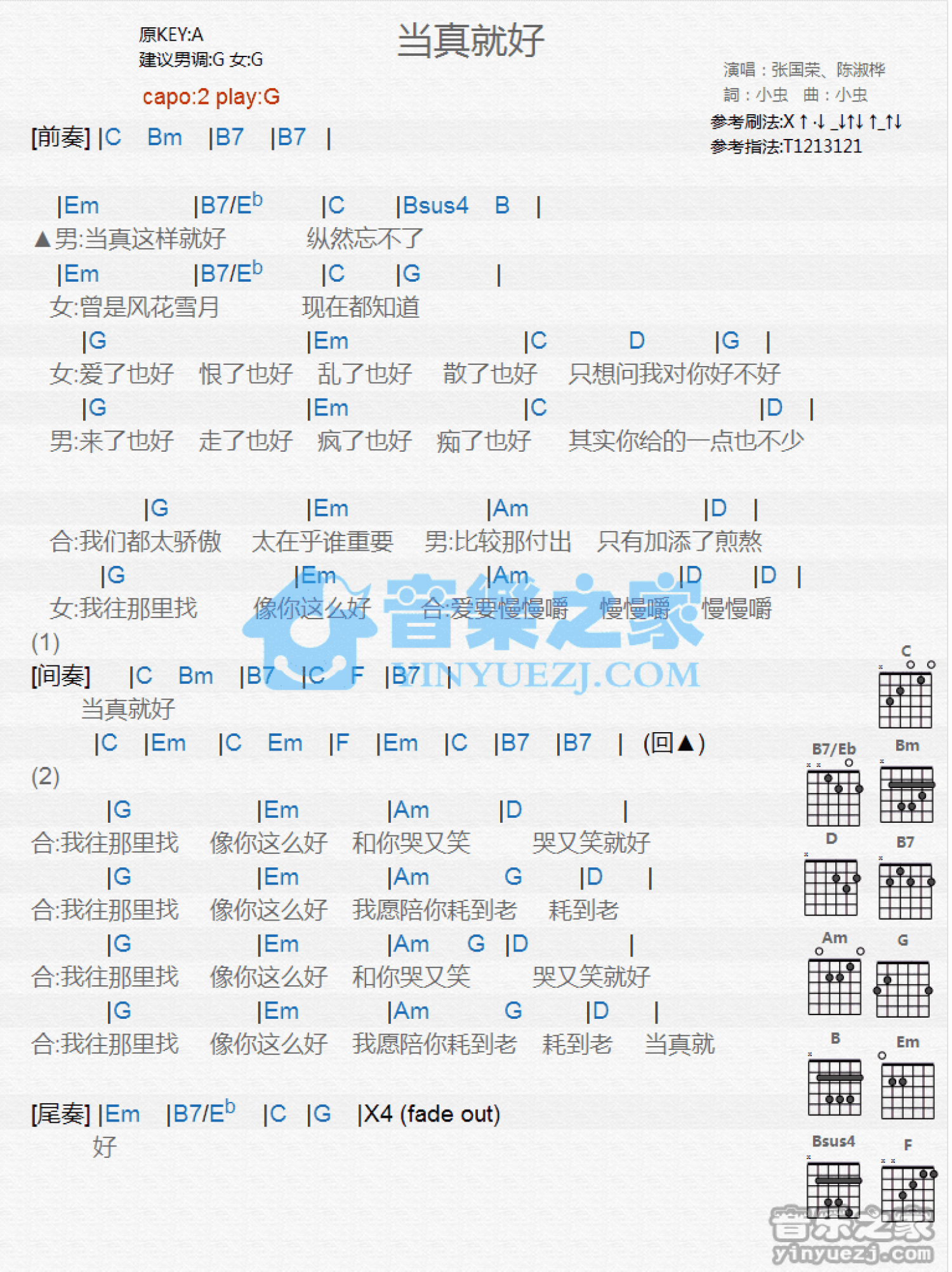 当真就好吉他谱 - 张国荣/陈淑桦 - G调吉他弹唱谱 - 和弦谱