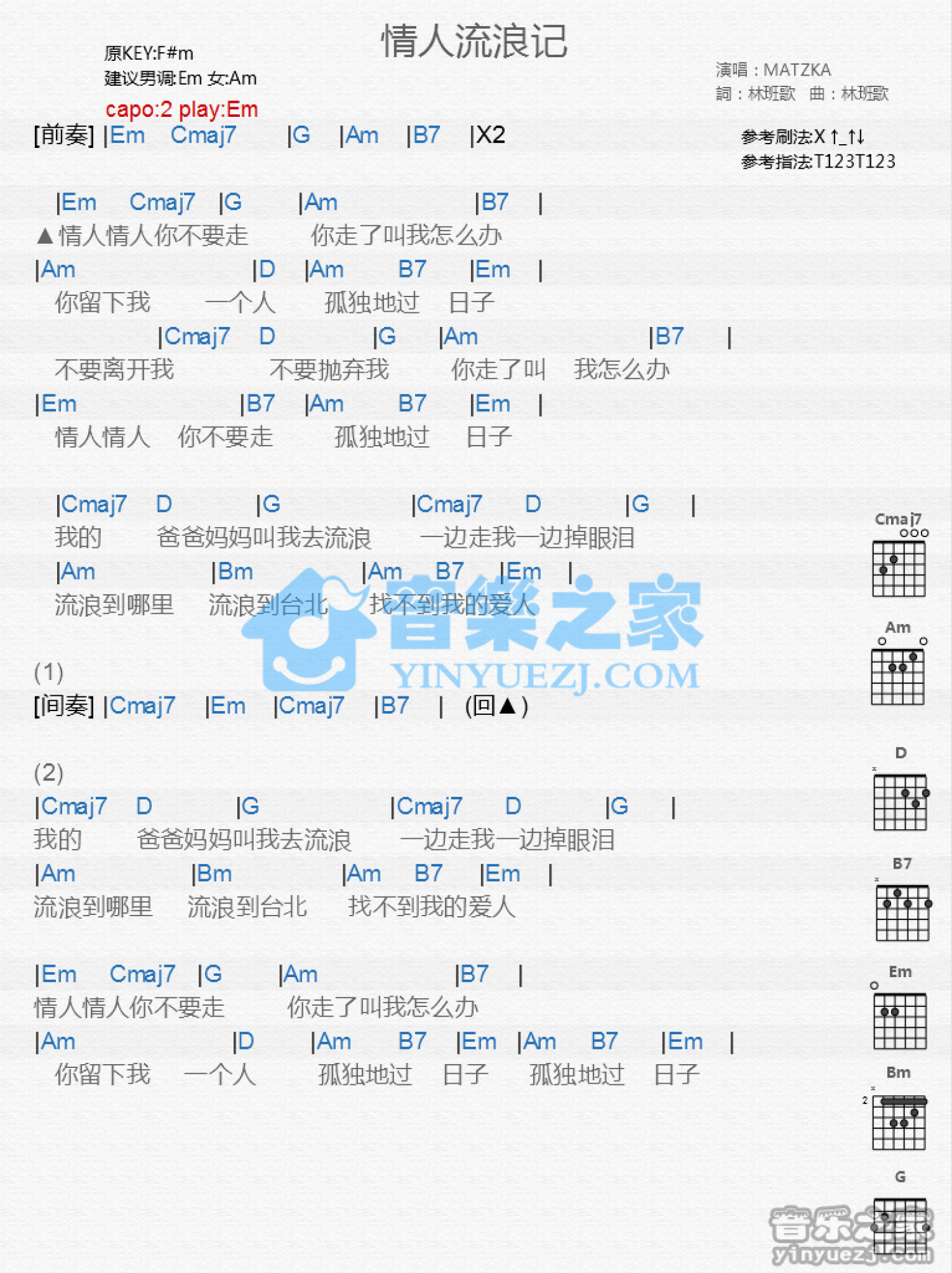 情人流浪记吉他谱 - MATZKA - E调吉他弹唱谱 - 和弦谱