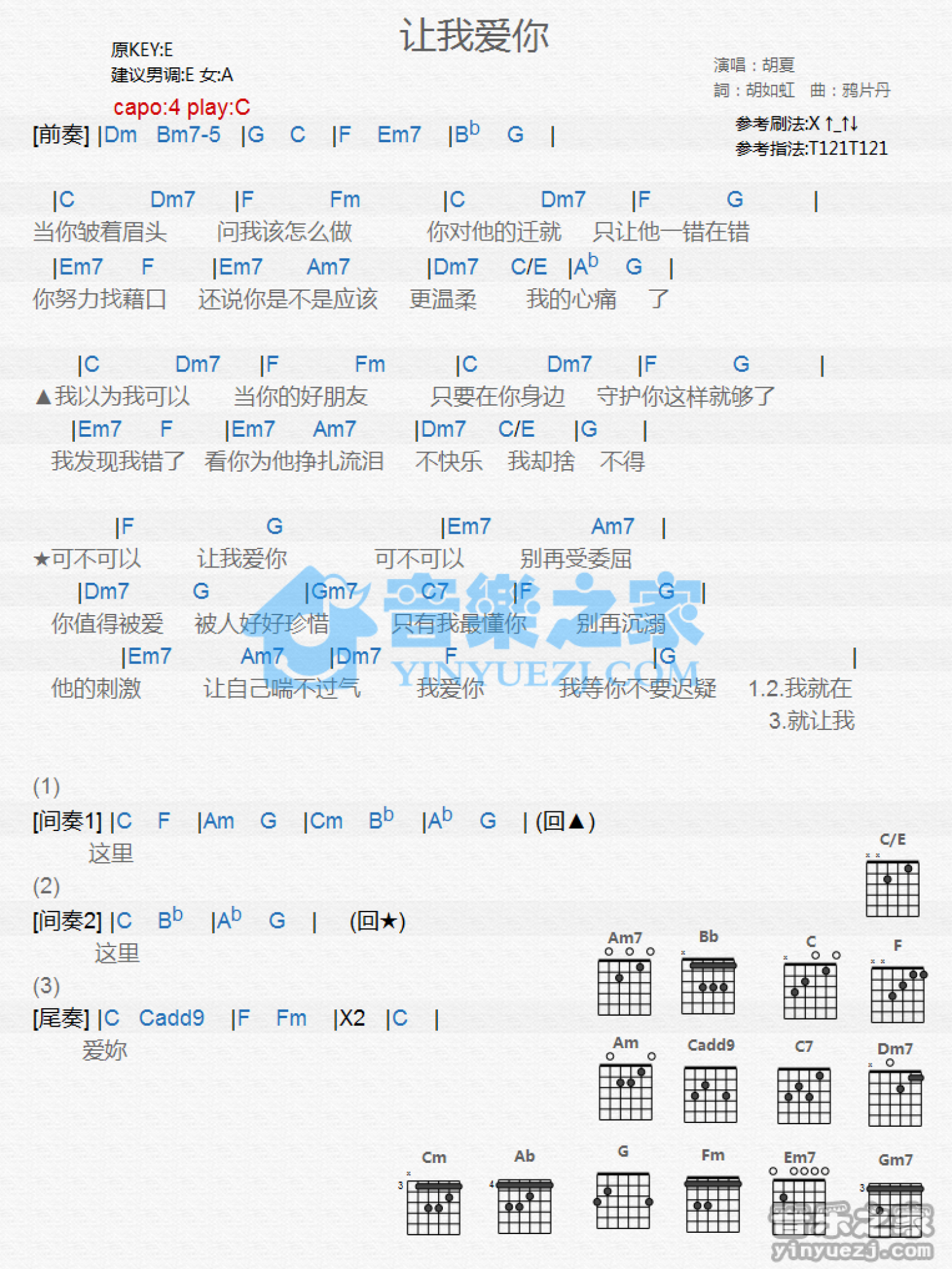 让我爱你吉他谱 - 胡夏 - C调吉他弹唱谱 - 和弦谱
