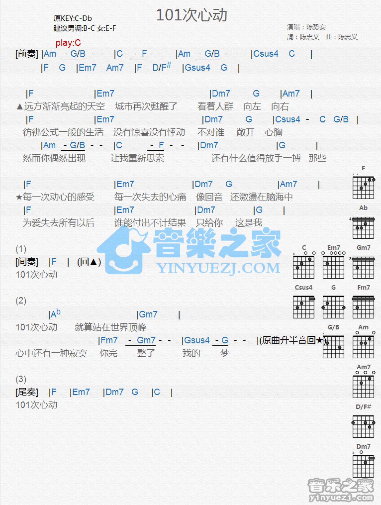 101次心动吉他谱 - 陈势安 - C调吉他弹唱谱 - 和弦谱