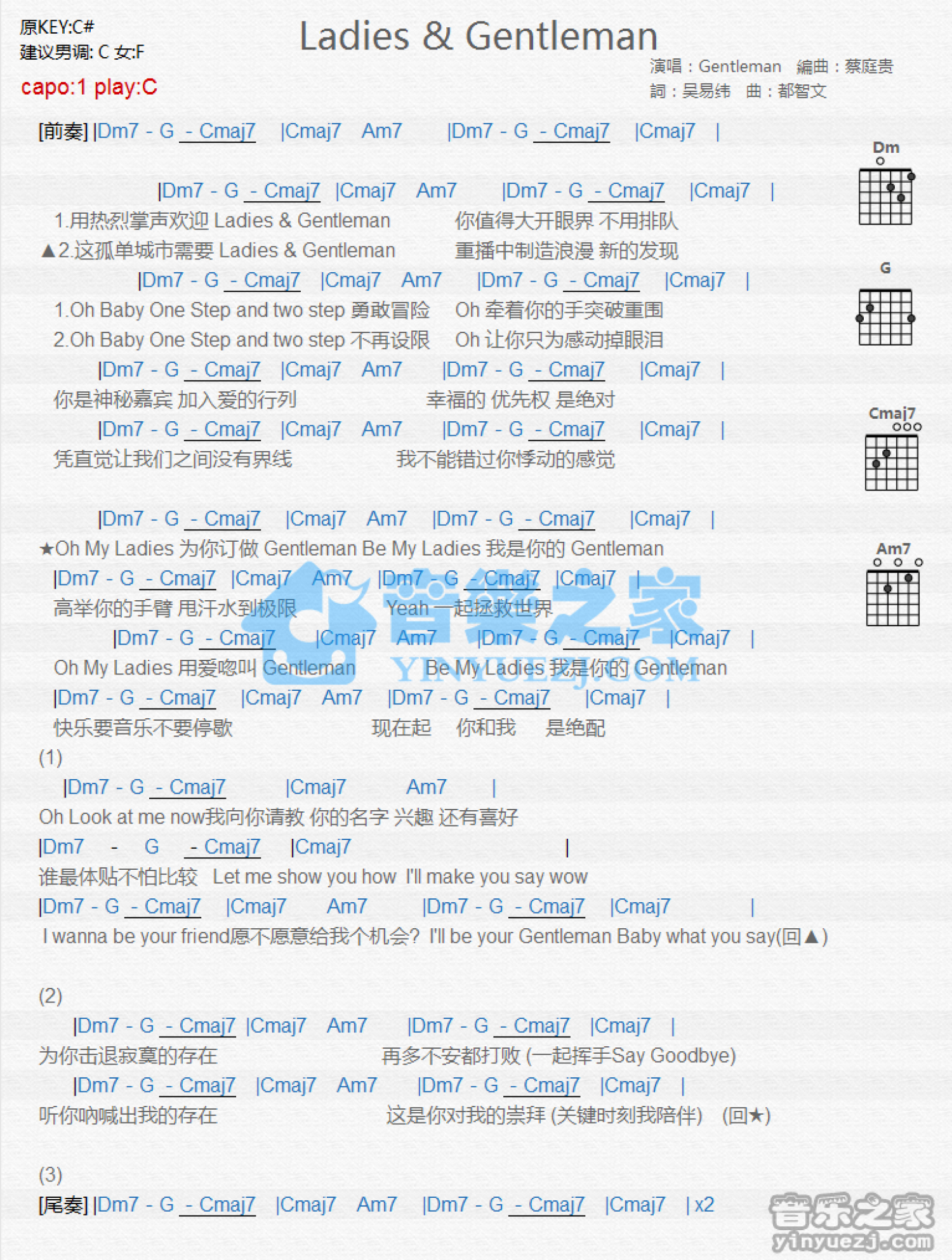 Ladies & Gentleman吉他谱 - Gentleman - C调吉他弹唱谱 - 和弦谱