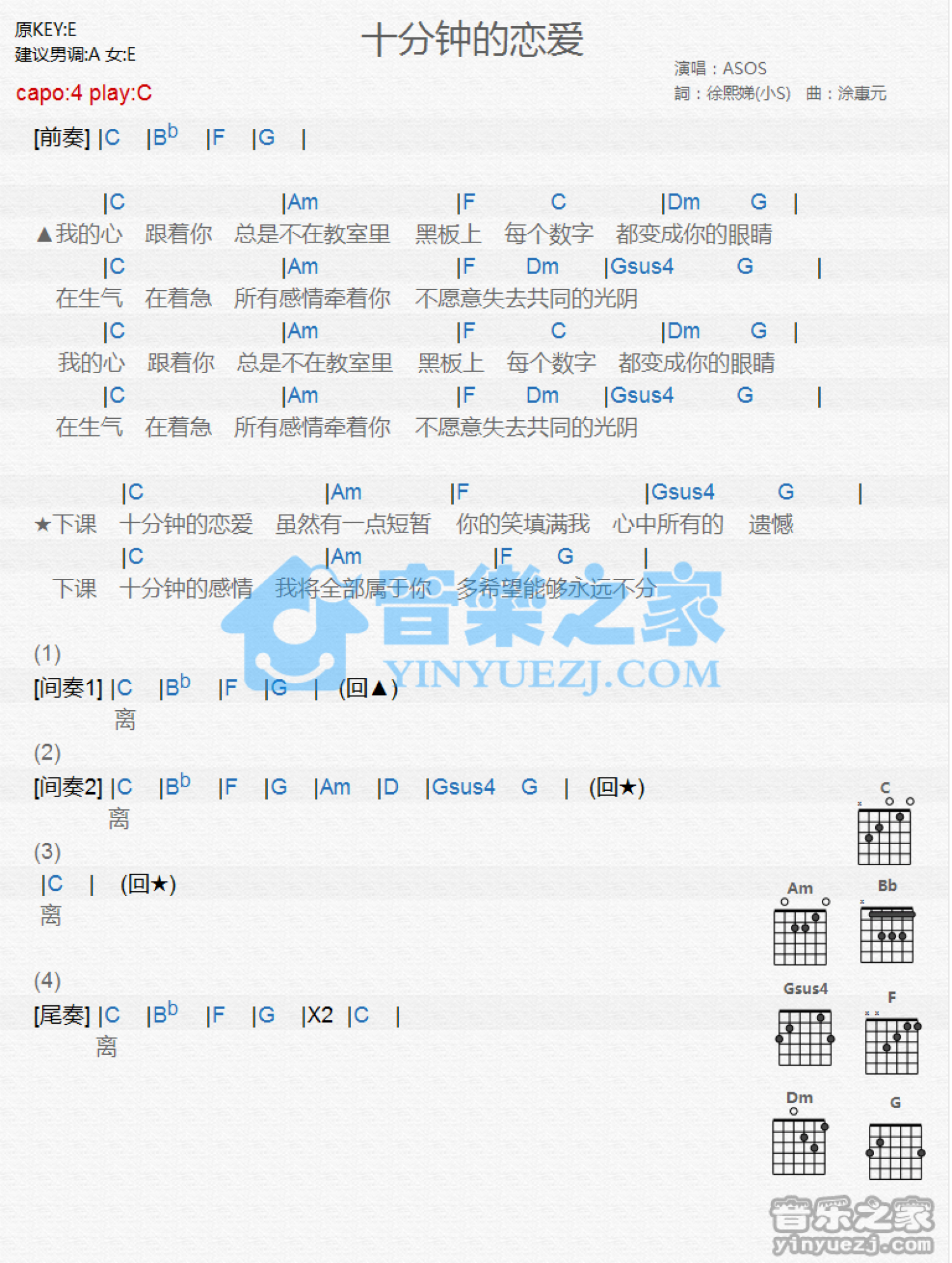 十分钟的恋爱吉他谱 - ASOS - C调吉他弹唱谱 - 和弦谱