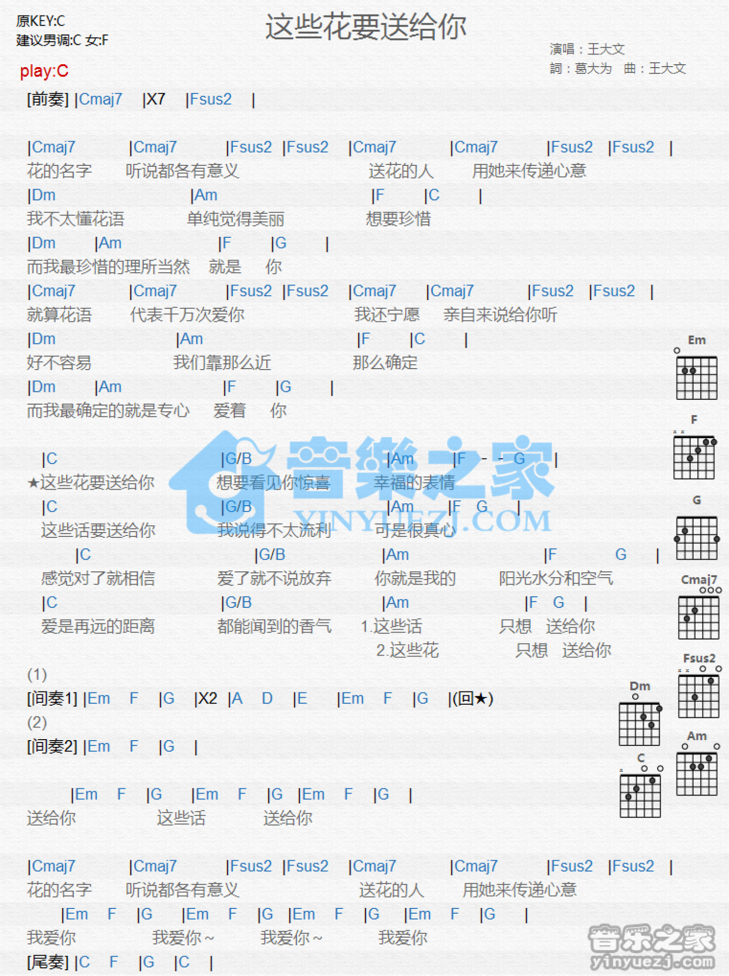 这些花要送给你吉他谱 - 王大文 - C调吉他弹唱谱 - 和弦谱