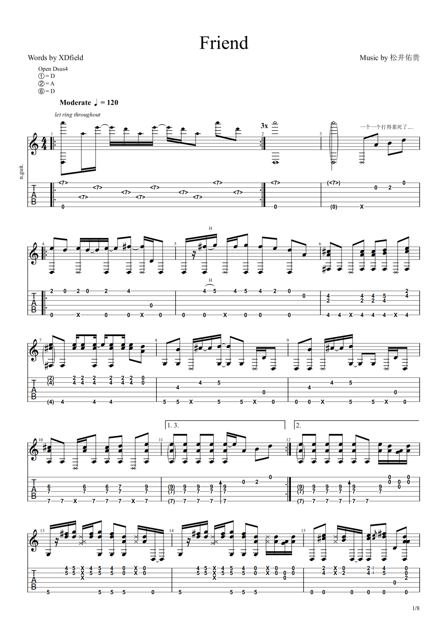 • Friend吉他谱 - 松井佑贵 - 吉他独奏谱第1张