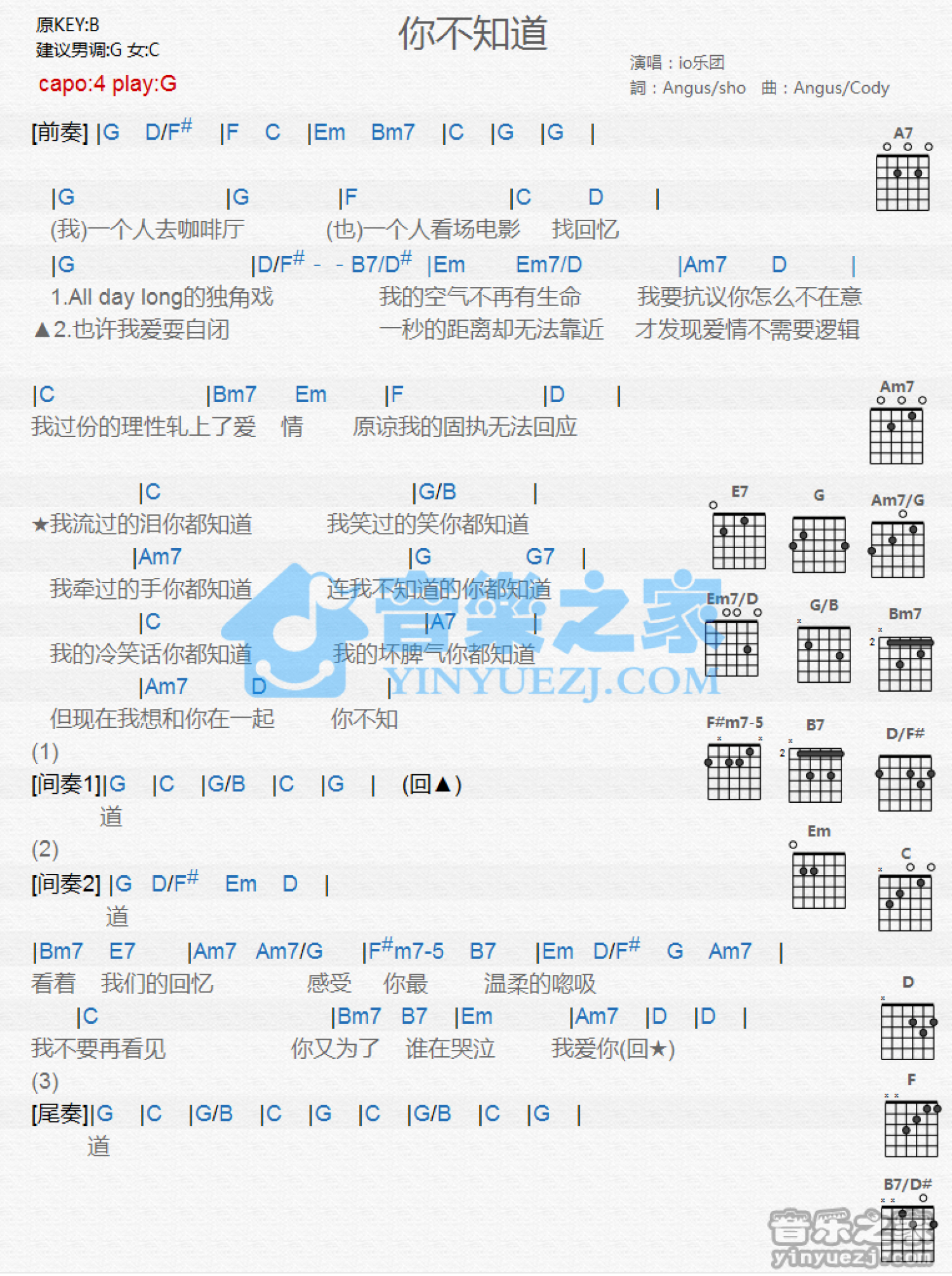 你不知道吉他谱 - io乐团 - G调吉他弹唱谱 - 和弦谱