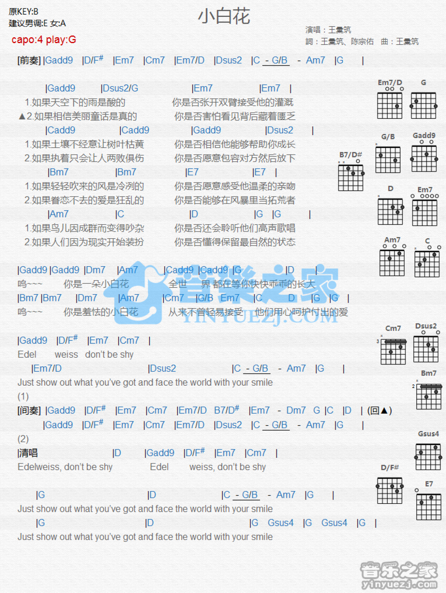 当前位置:琴谱网>吉他弹唱>小白花
