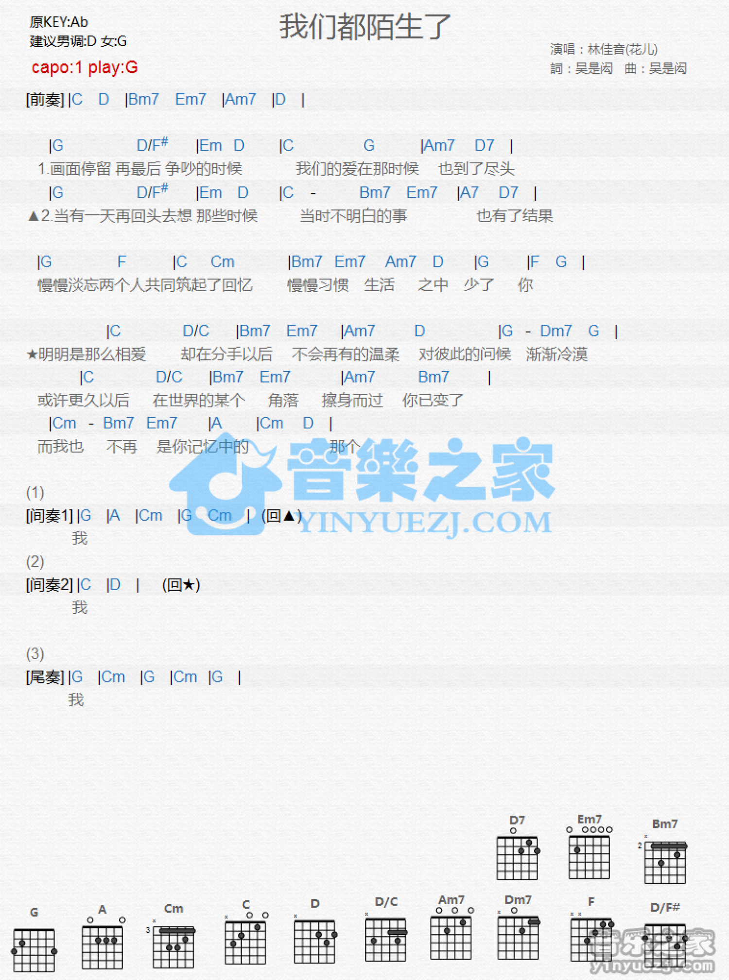 我们都陌生了吉他谱 - 林佳音 - G调吉他弹唱谱 - 和弦谱