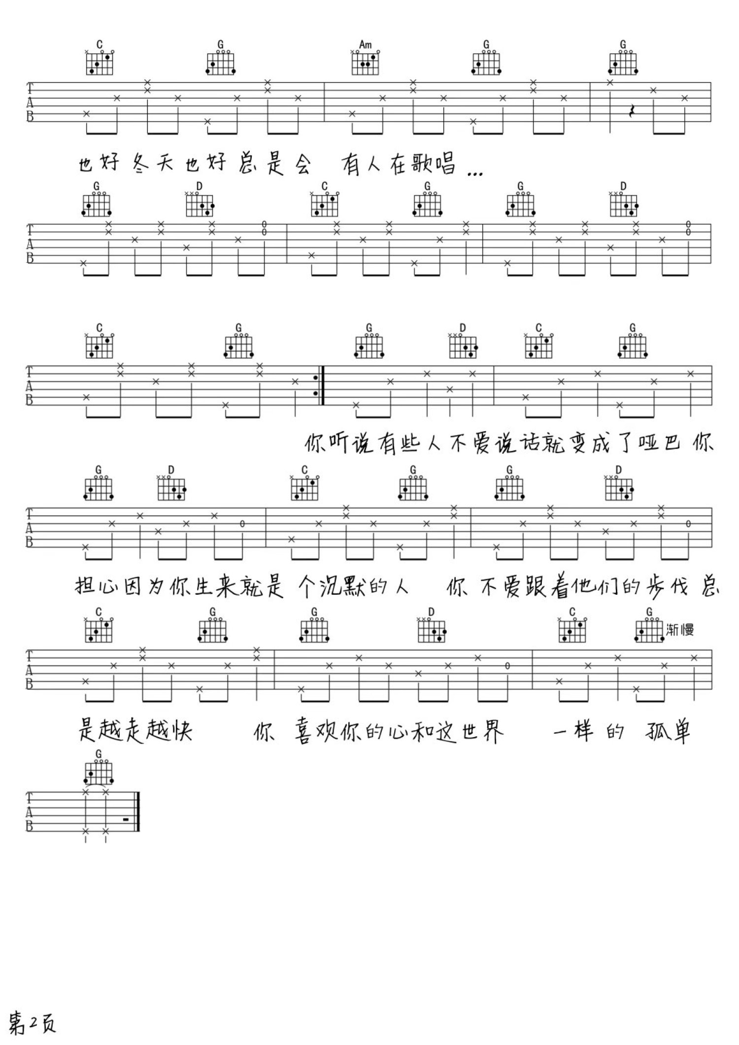 吉他弹唱G调来源: 盼盼875 浏览2018-04-04 14:27发布图谱共2页