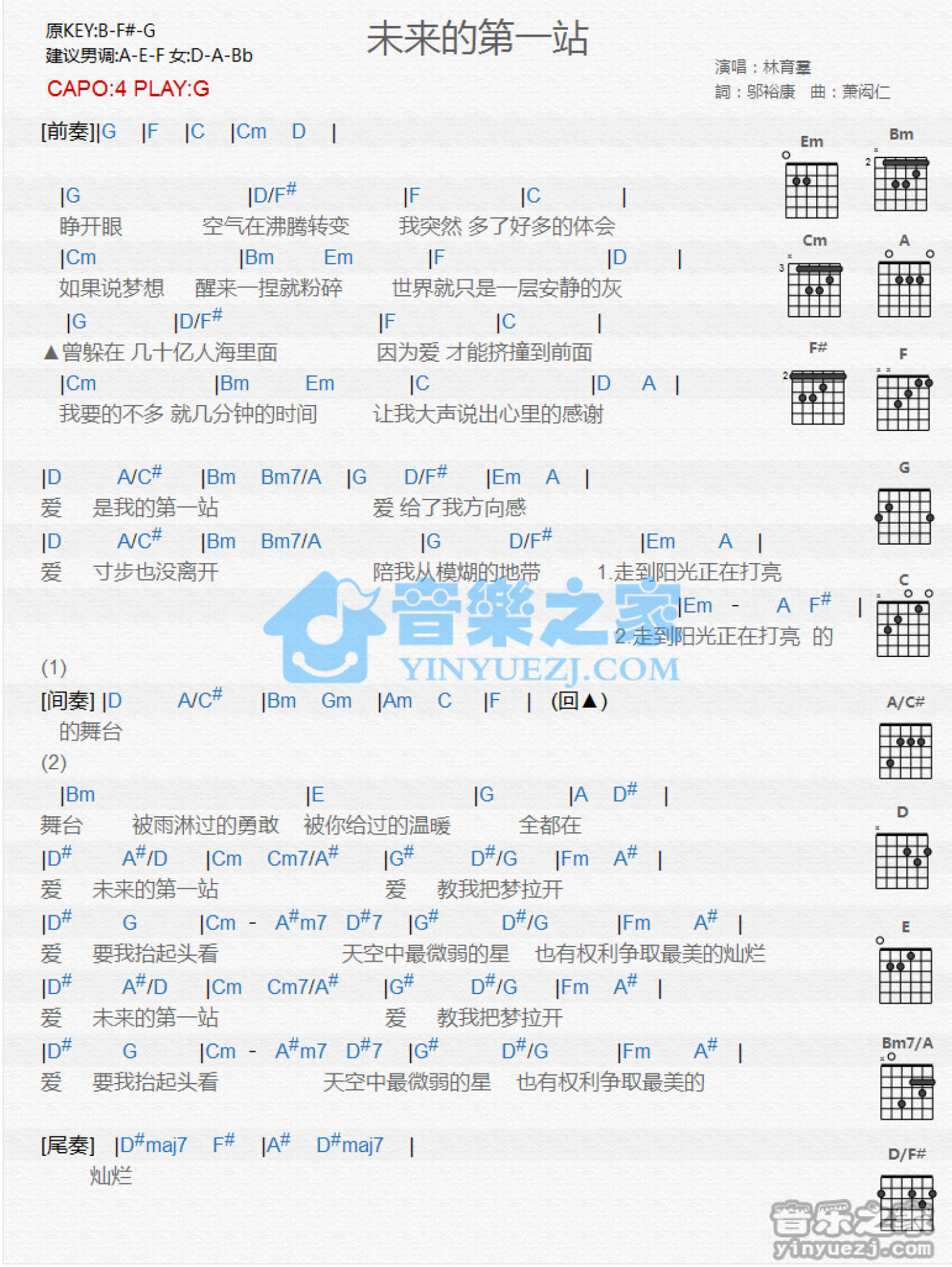 曲谱介绍: G调版林育群《未来的第一站》吉他和弦弹唱谱