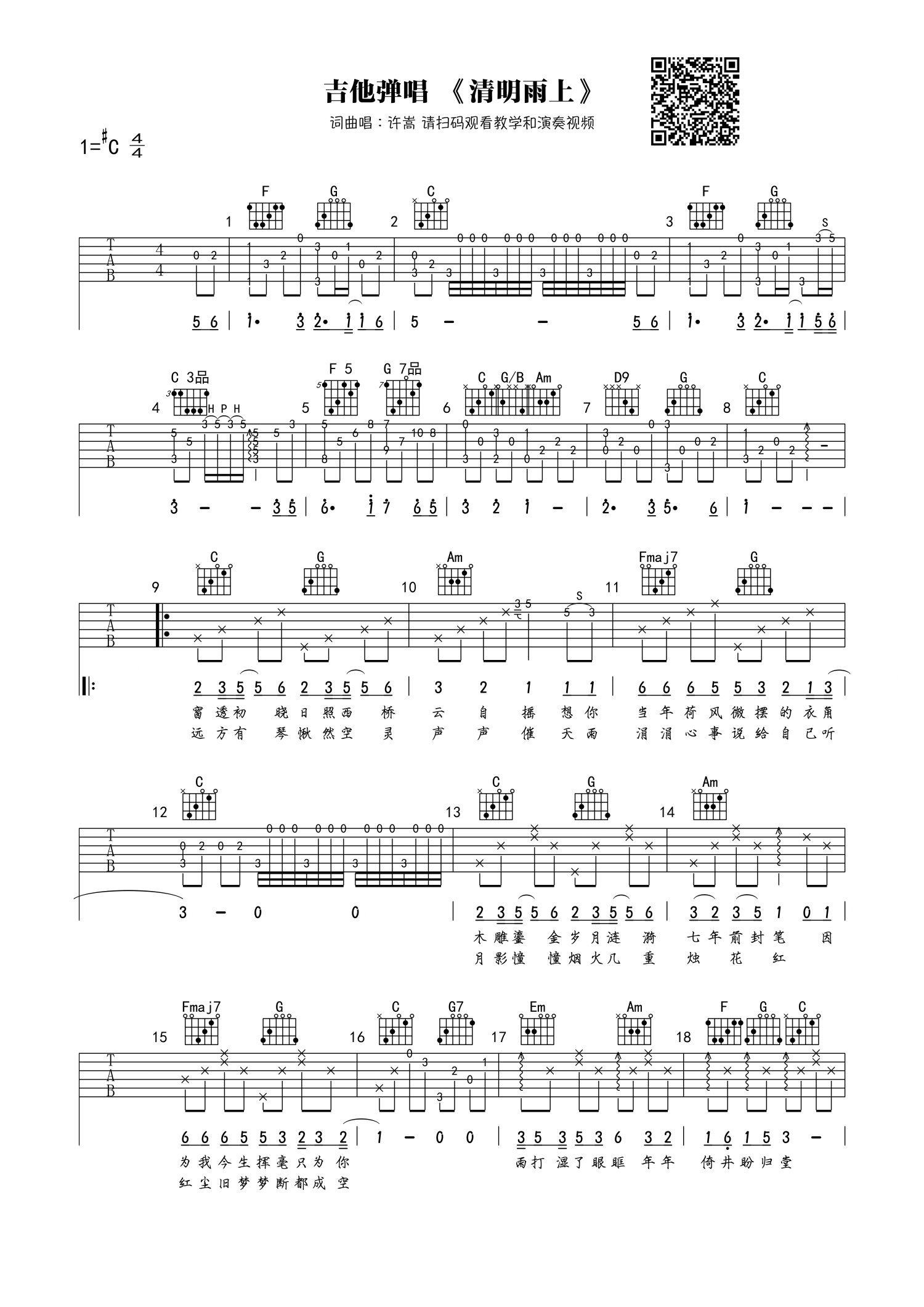 • 清明雨上吉他谱 - 许嵩 - C调吉他弹唱谱第1张