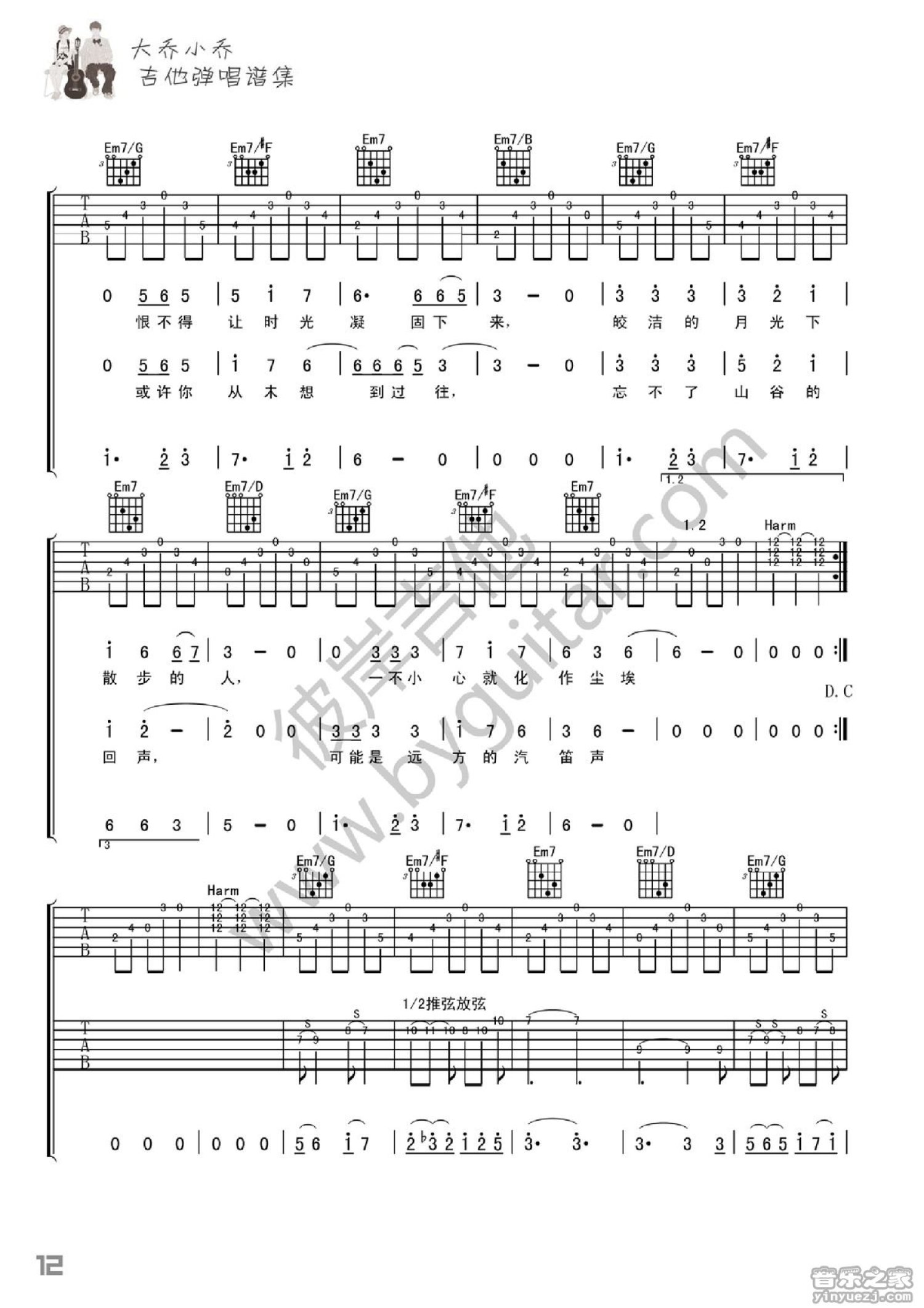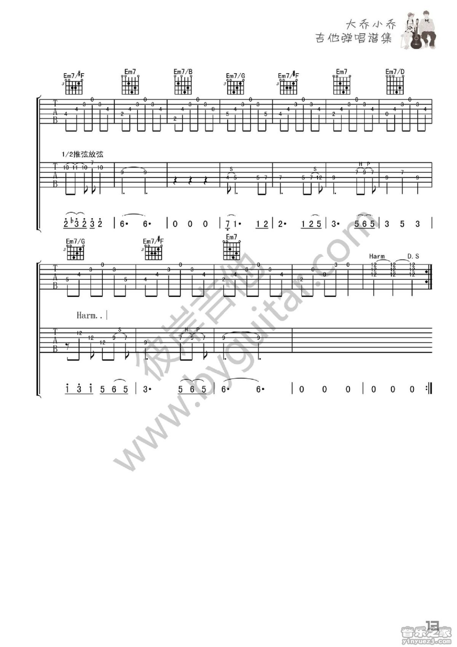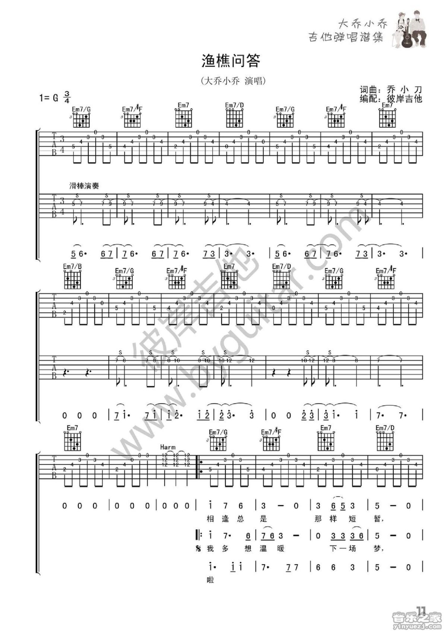 曲谱介绍: 彼岸G调双吉他版 大乔小乔《渔樵问答》吉他弹唱六线谱