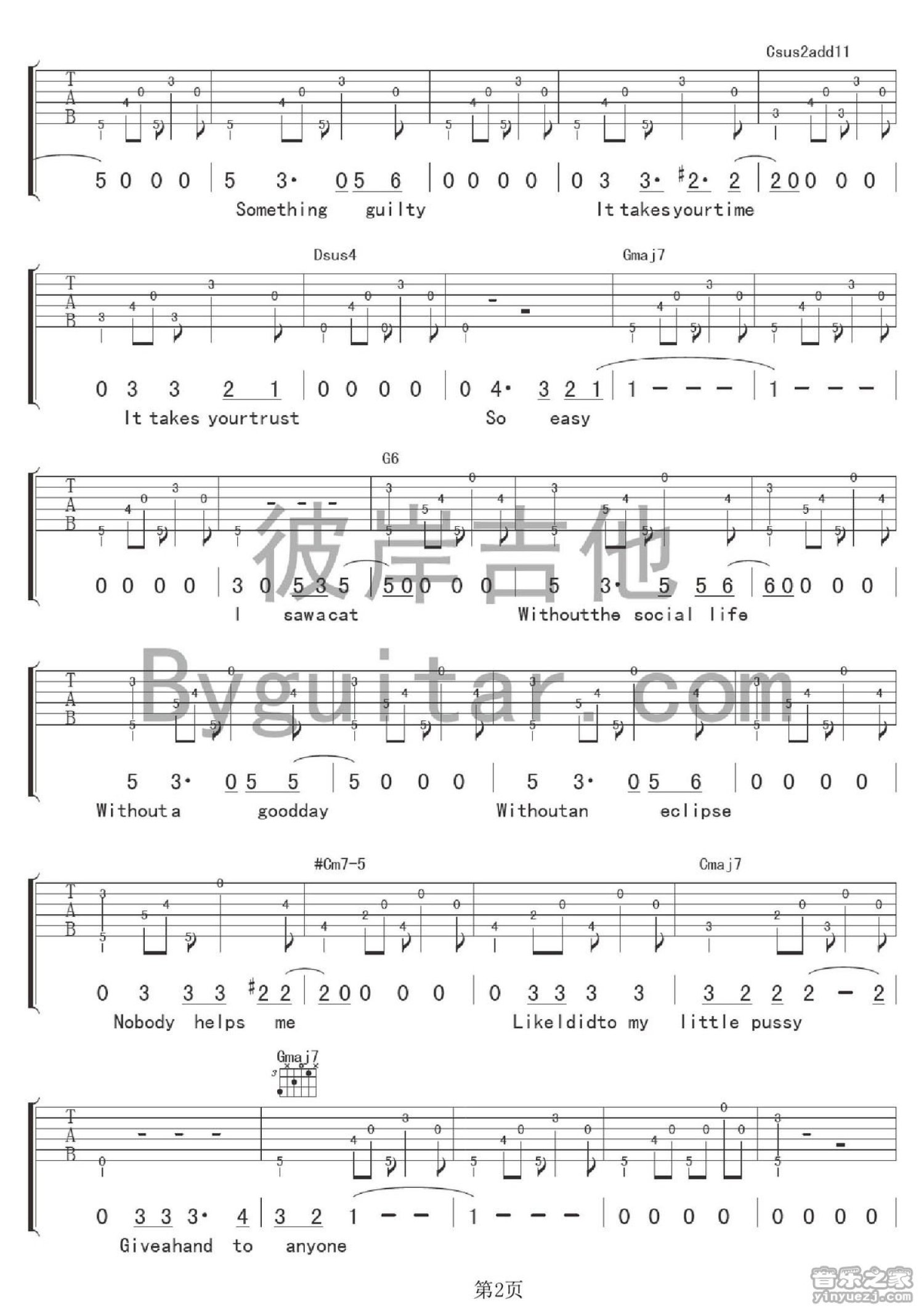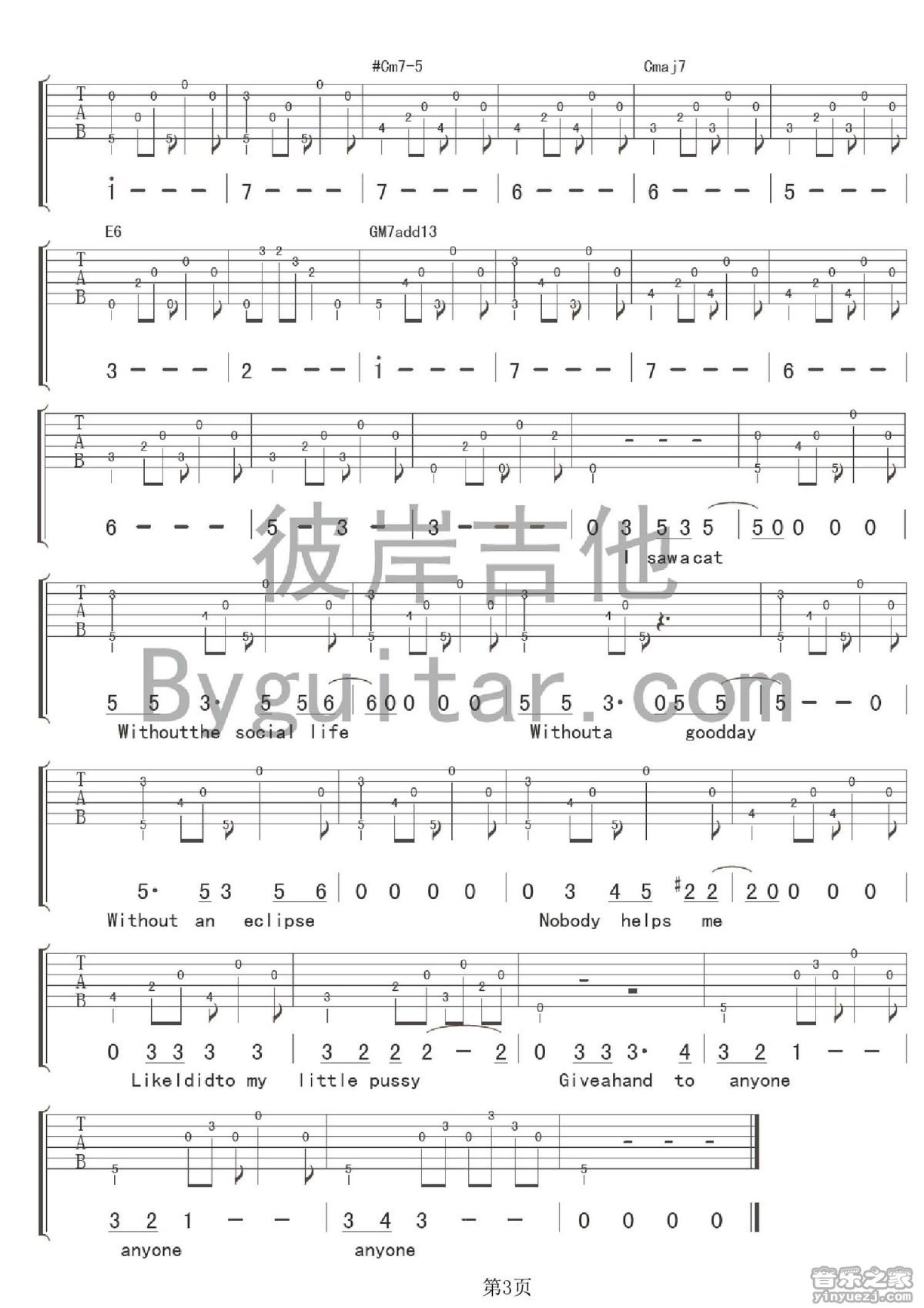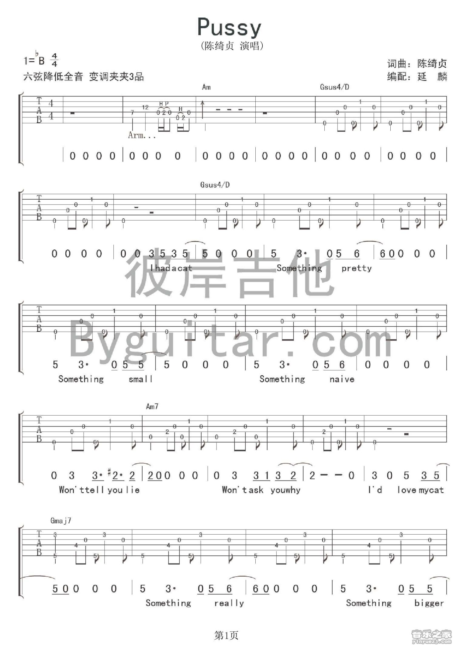 曲谱介绍: 彼岸bB调版 陈绮贞《Pussy》吉他弹唱六线谱