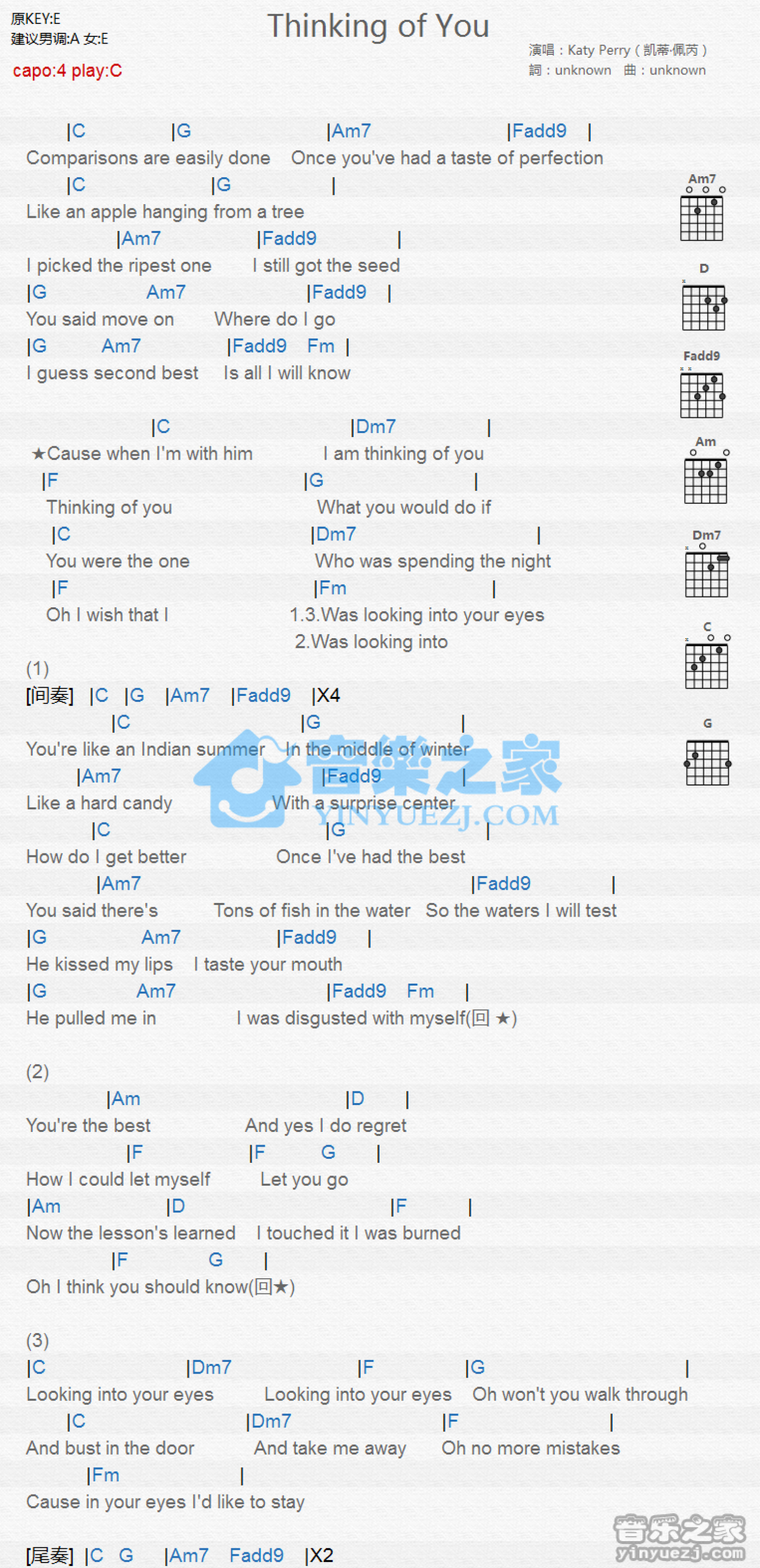 Thinking of You吉他谱 - Katy Perry - C调吉他弹唱谱 - 和弦谱
