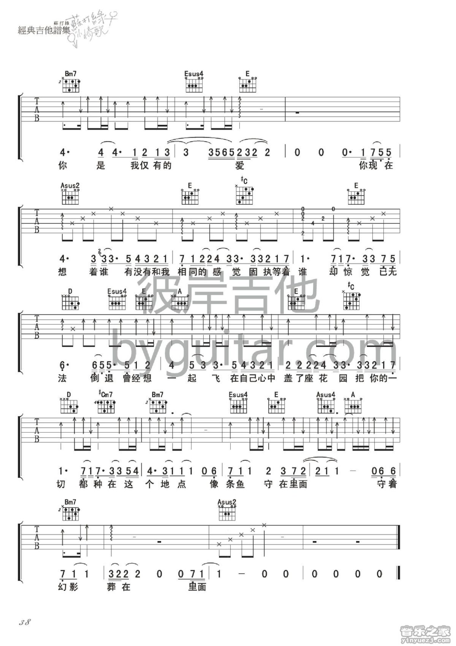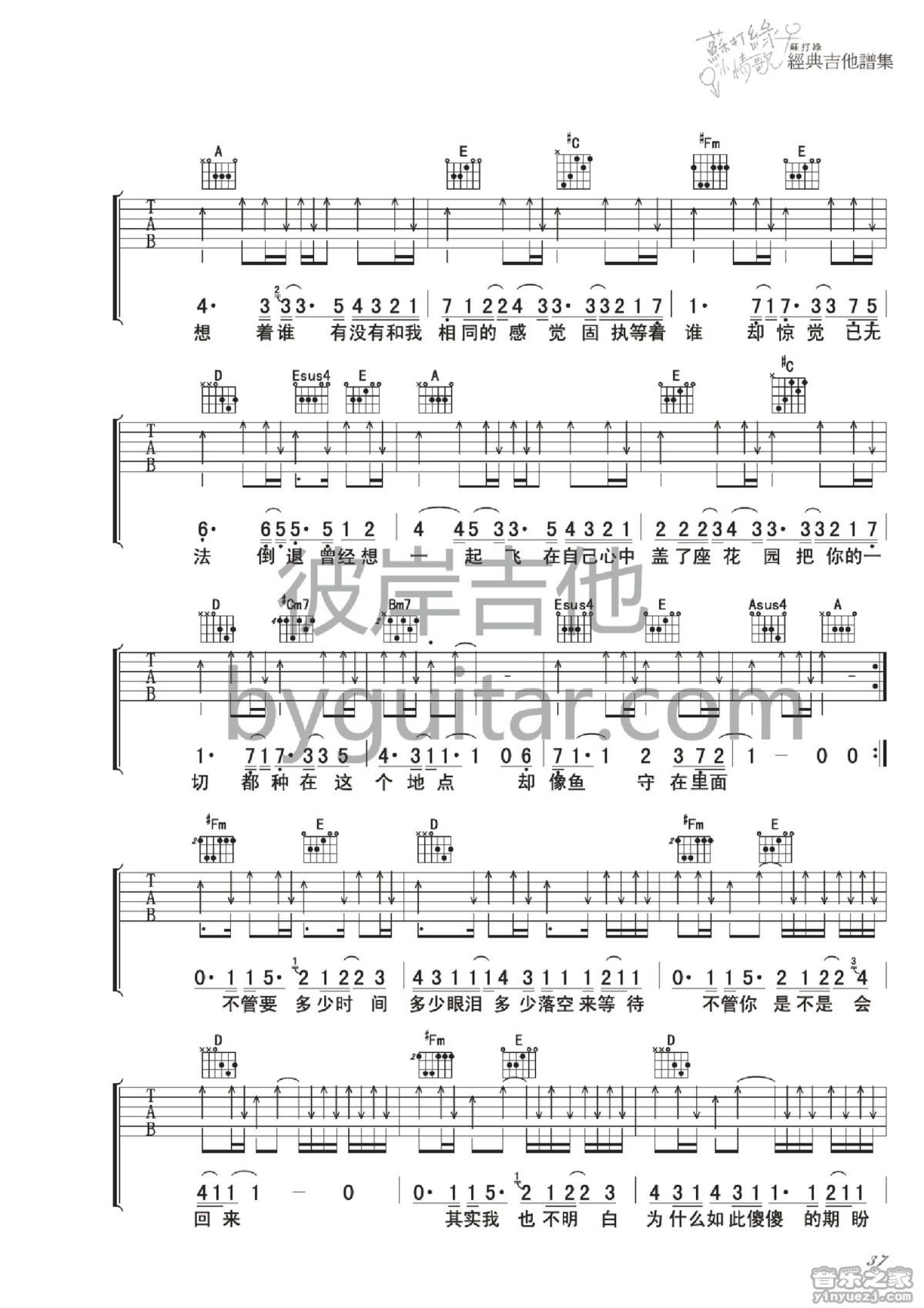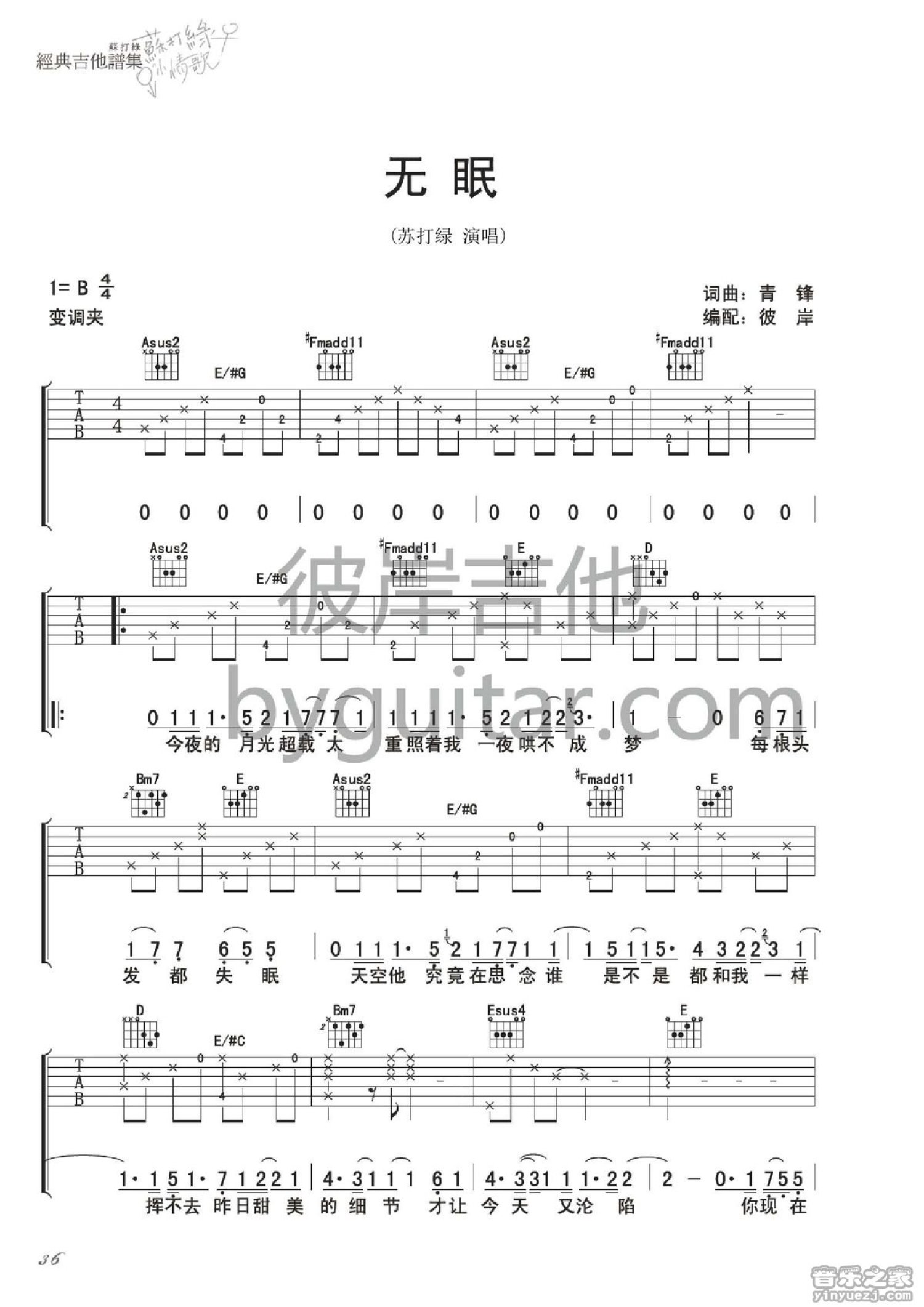 曲谱介绍: 彼岸B调版 苏打绿《无眠》吉他弹唱六线谱