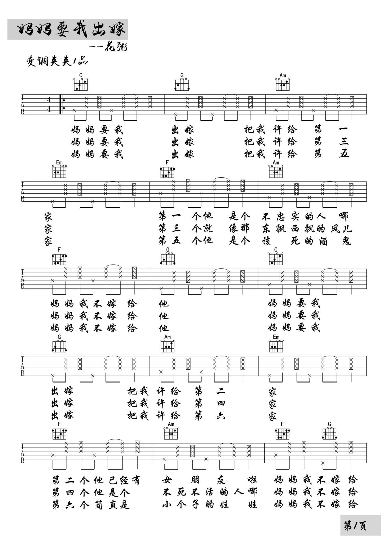 当前位置:琴谱网>吉他弹唱>妈妈要我出嫁