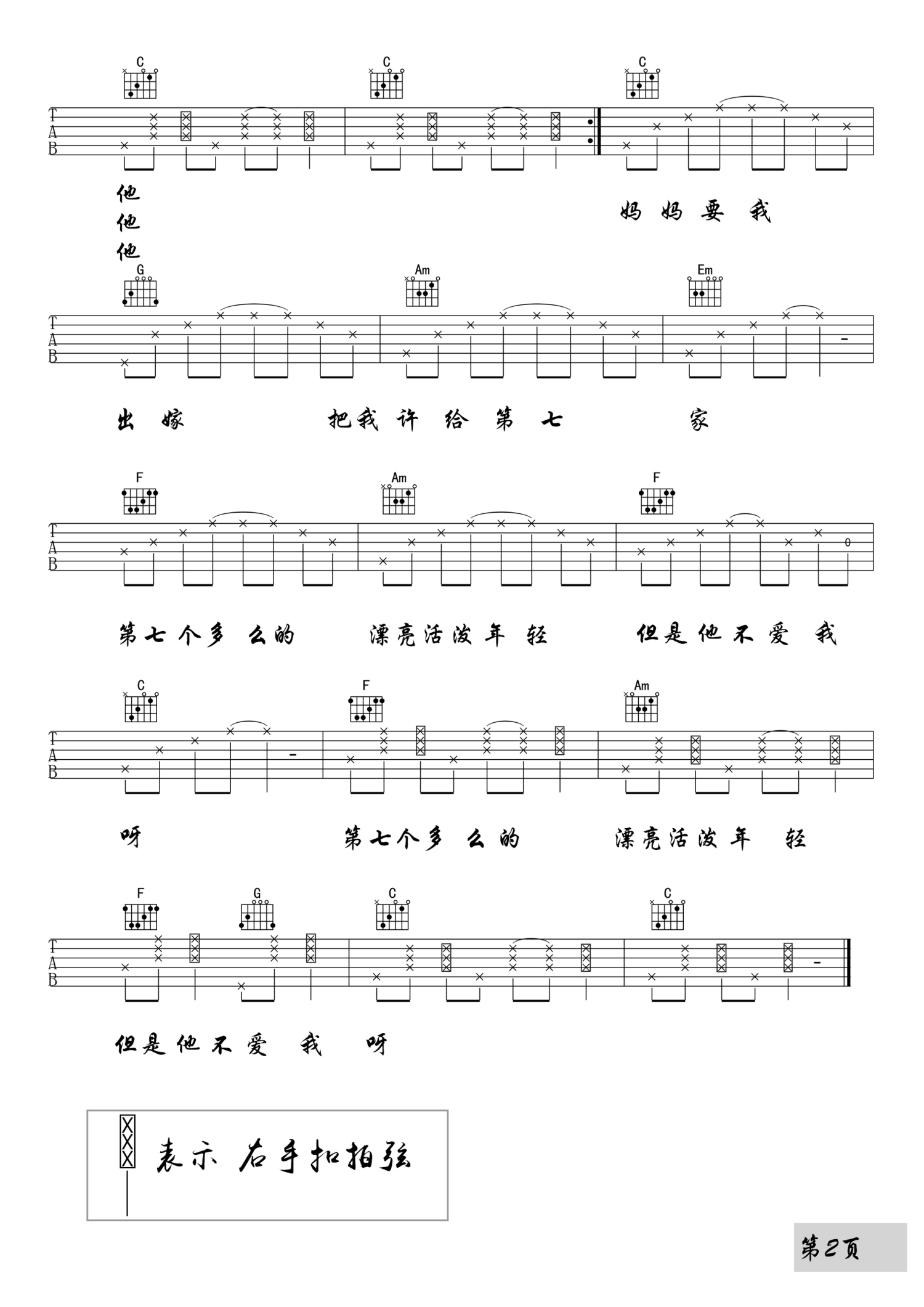 吉他弹唱C调来源:盼盼guitar1581 浏览2018-04-11 16:05发布图谱共2页