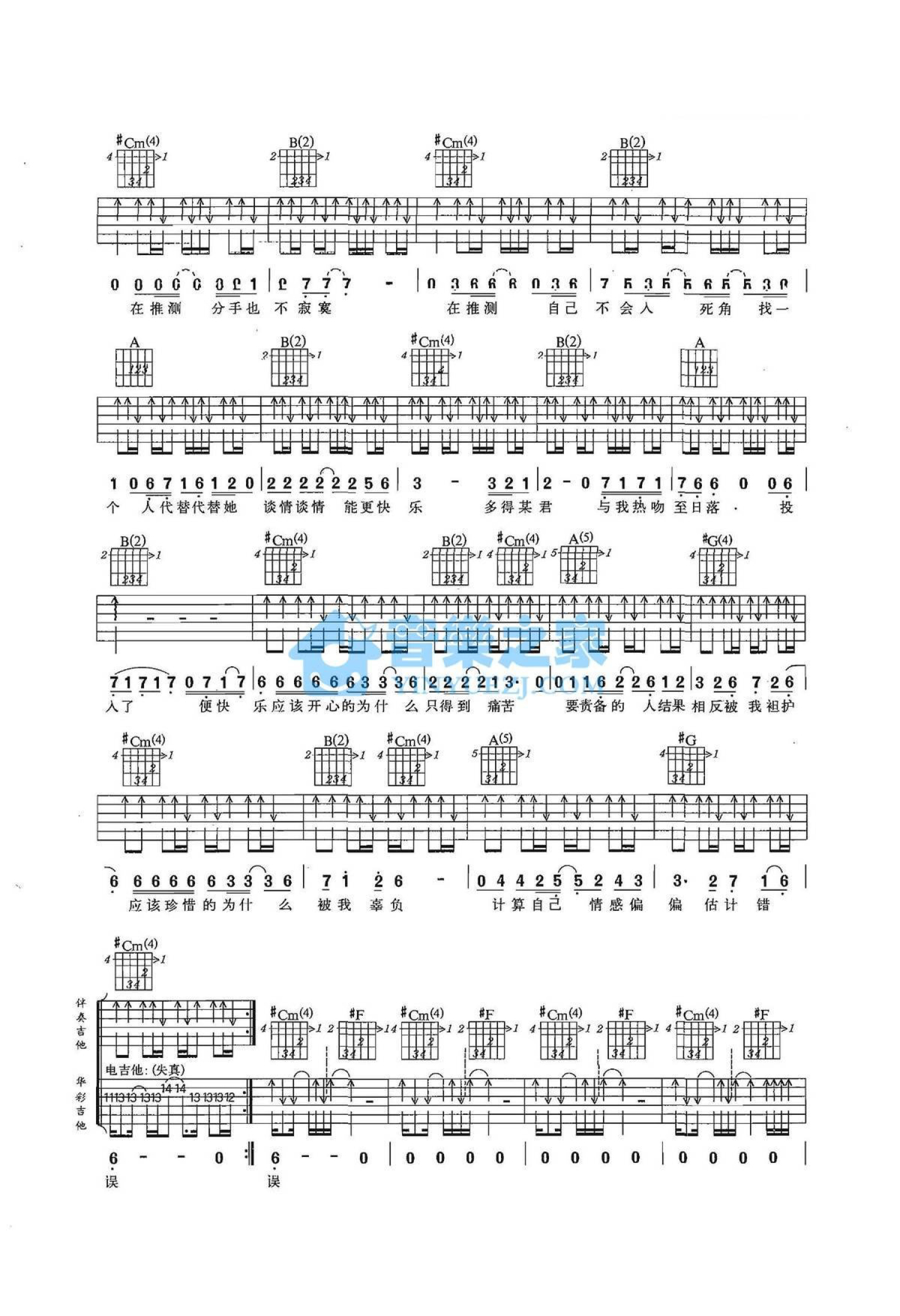 曲谱介绍: E调双吉他版 谢霆锋《估计错误》吉他弹唱六线谱