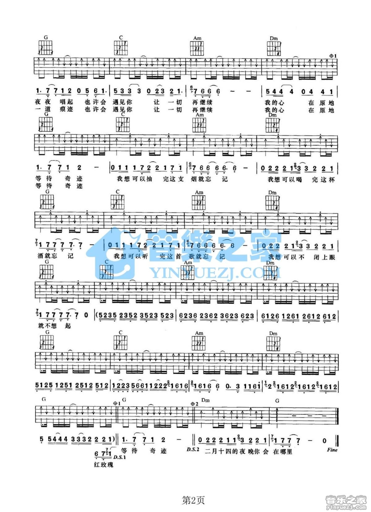 曲谱介绍: C调版深蓝乐队《2月14日》吉他弹唱六线谱