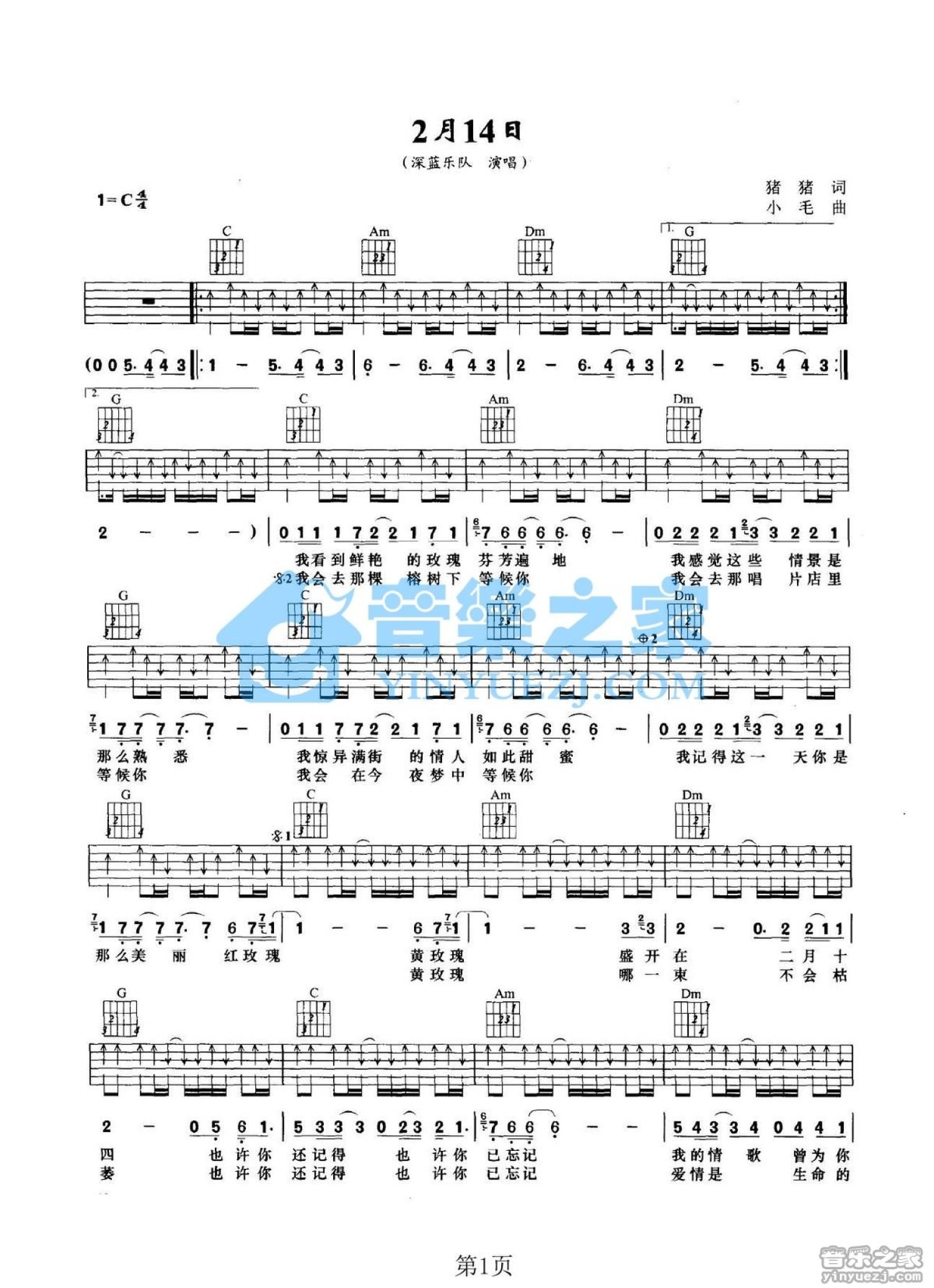 2月14日吉他谱 - 深蓝乐队 - C调吉他弹唱谱
