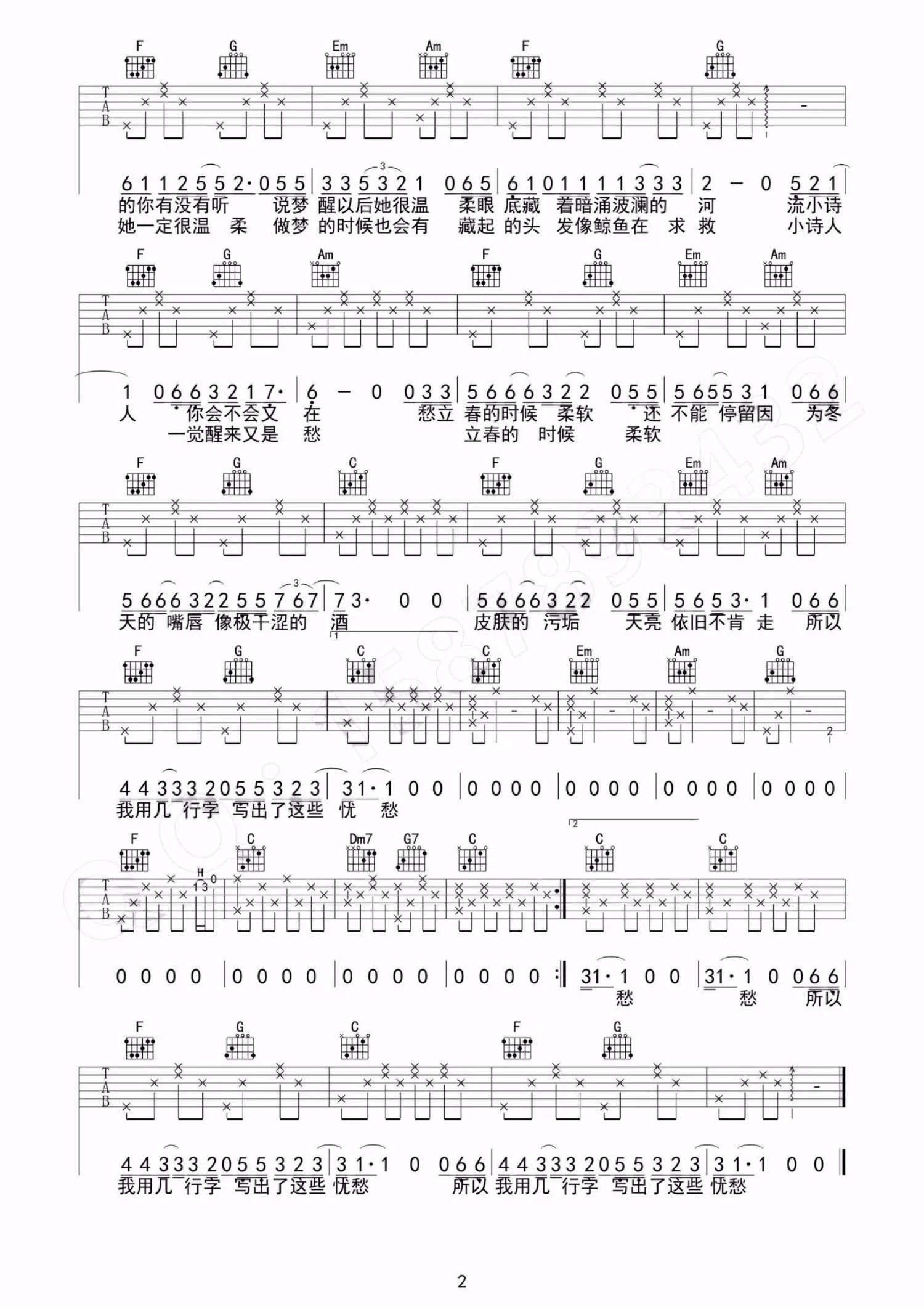当前位置:琴谱网>吉他弹唱>小诗人