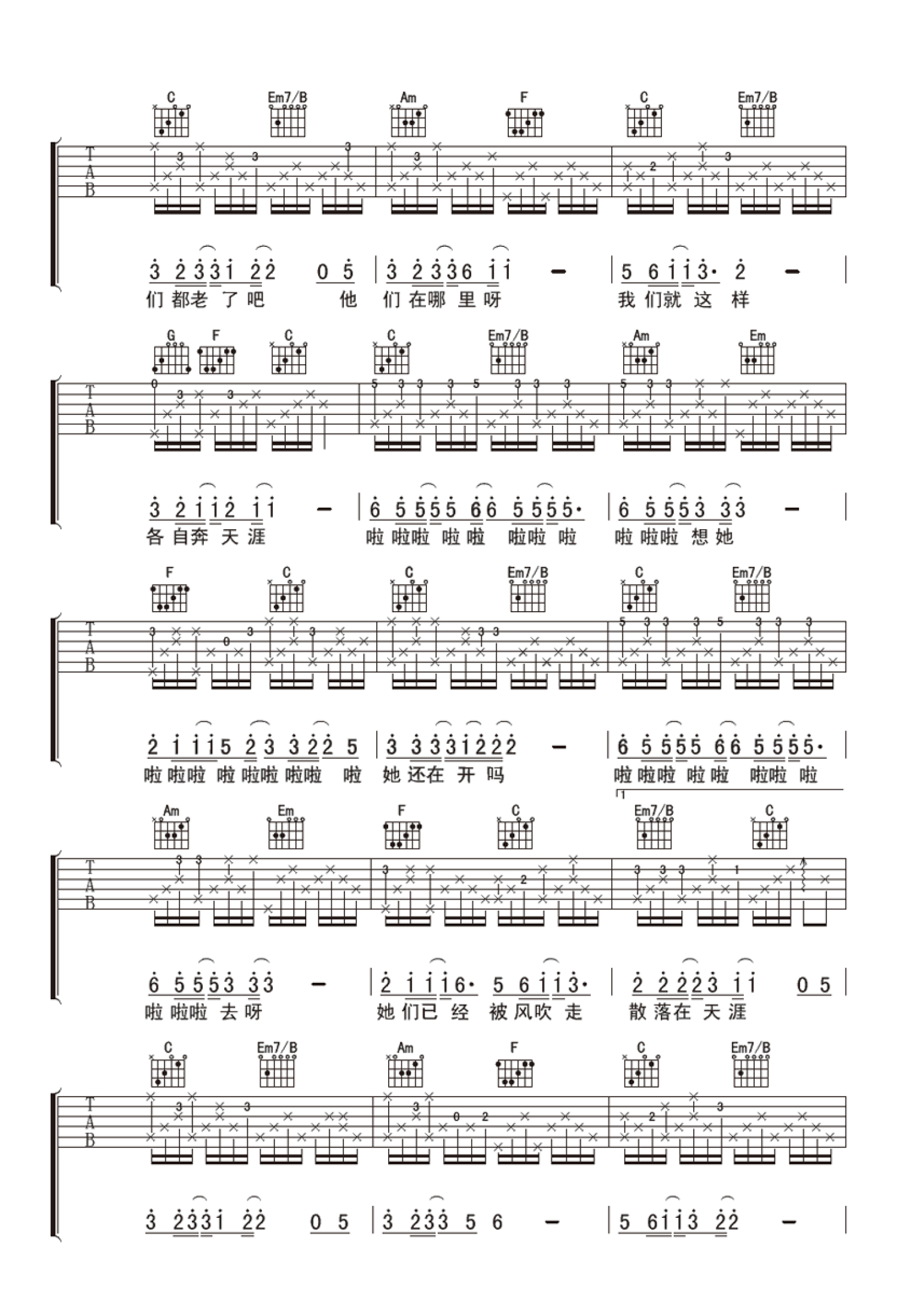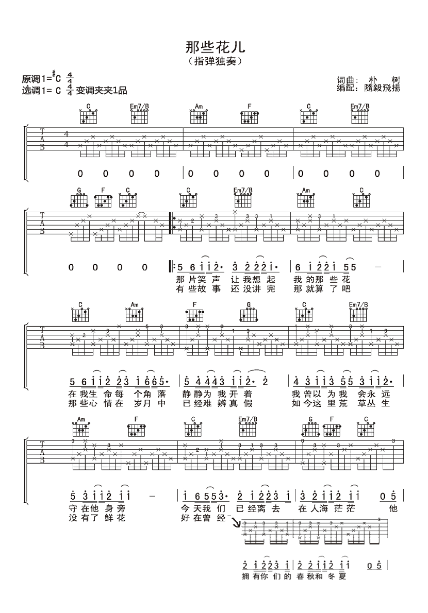 曲谱介绍: 朴树那些花儿吉他谱C调指弹独奏