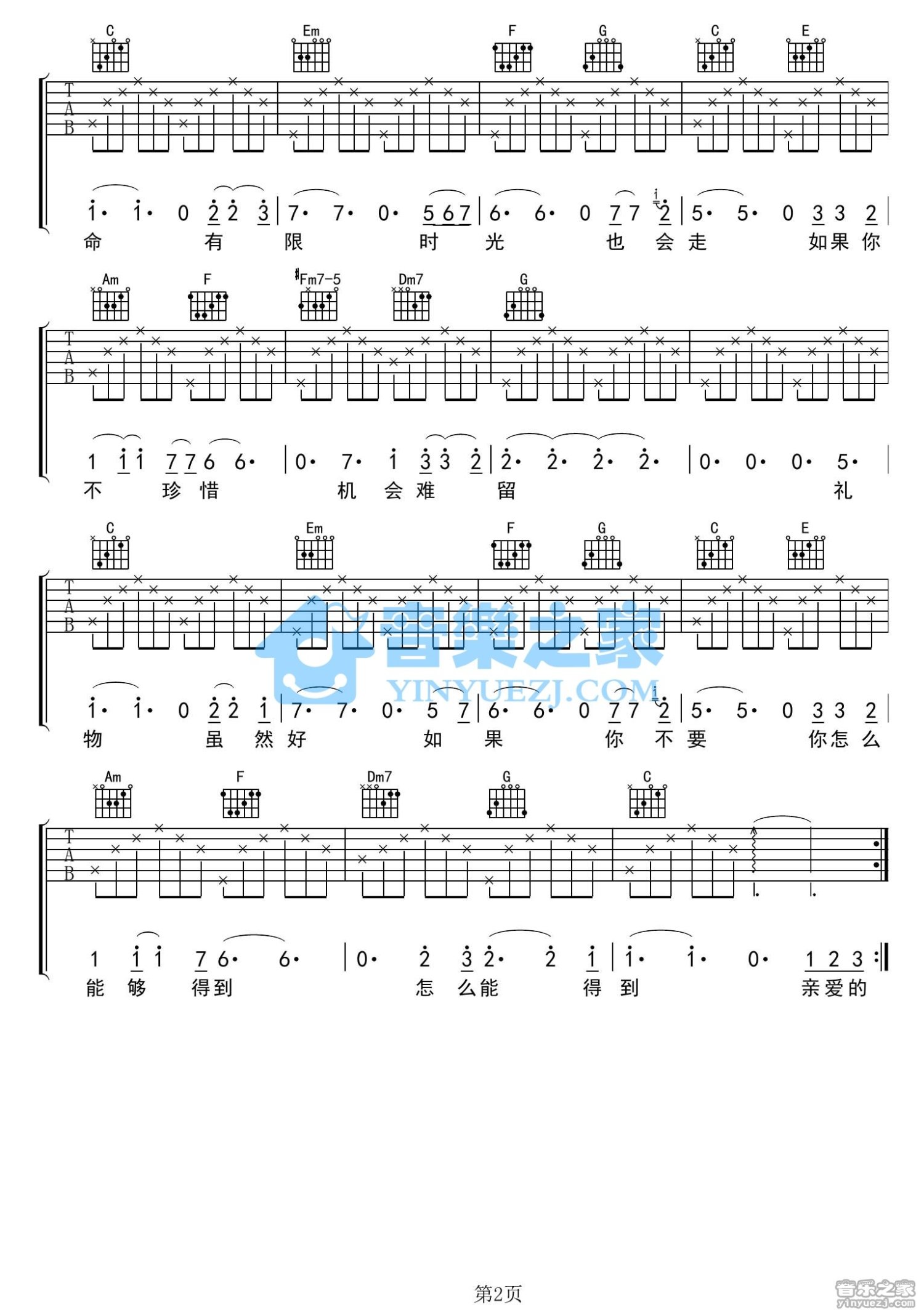 吉他弹唱C调来源:YYZJ1009 浏览2021-02-07 09:02发布图谱共2页