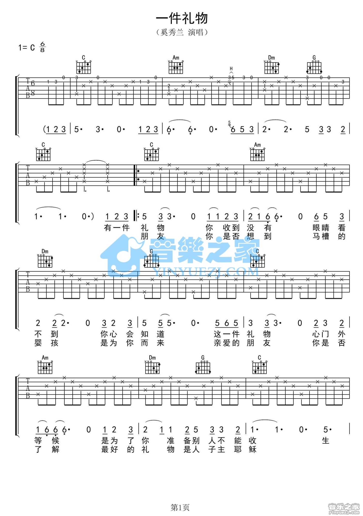 一件礼物吉他谱 - 奚秀兰 - C调吉他弹唱谱