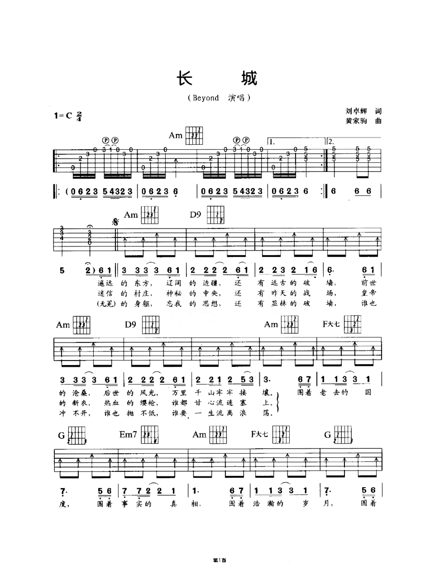 长城吉他谱 - Beyond - 吉他弹唱谱