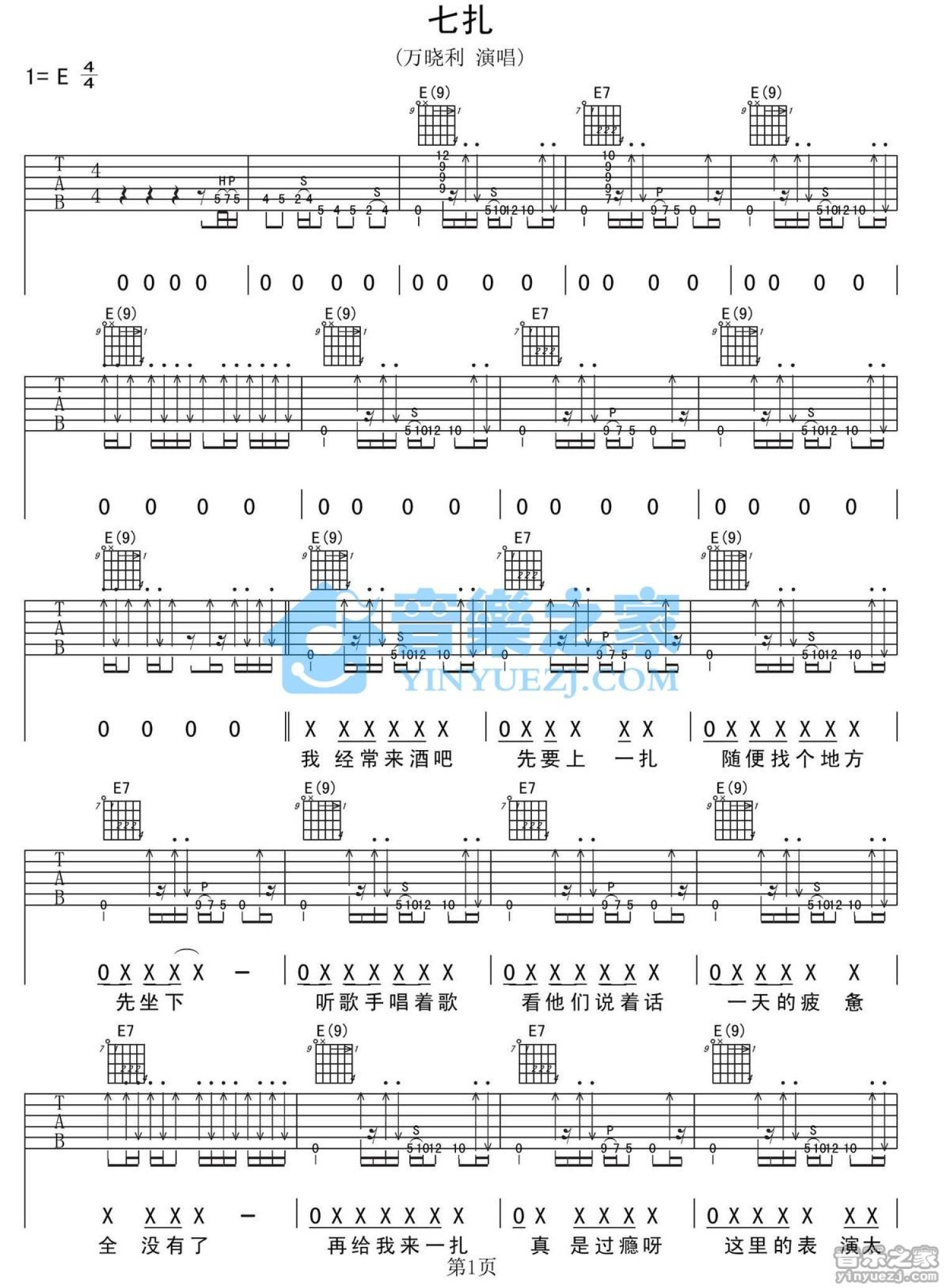七扎吉他谱 - 万晓利 - E调吉他弹唱谱