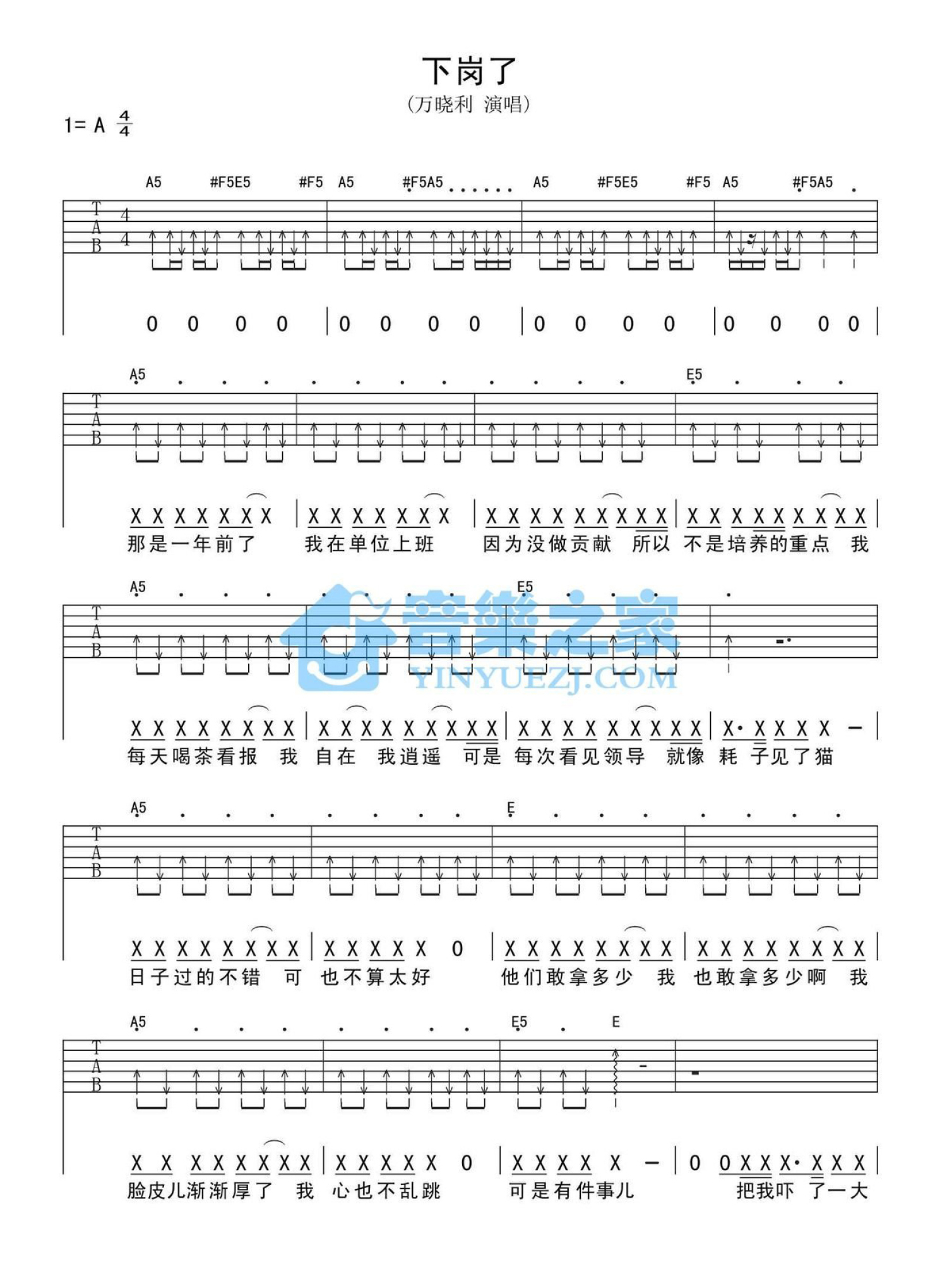 曲谱介绍: A调版《下岗了》吉他弹唱六线谱