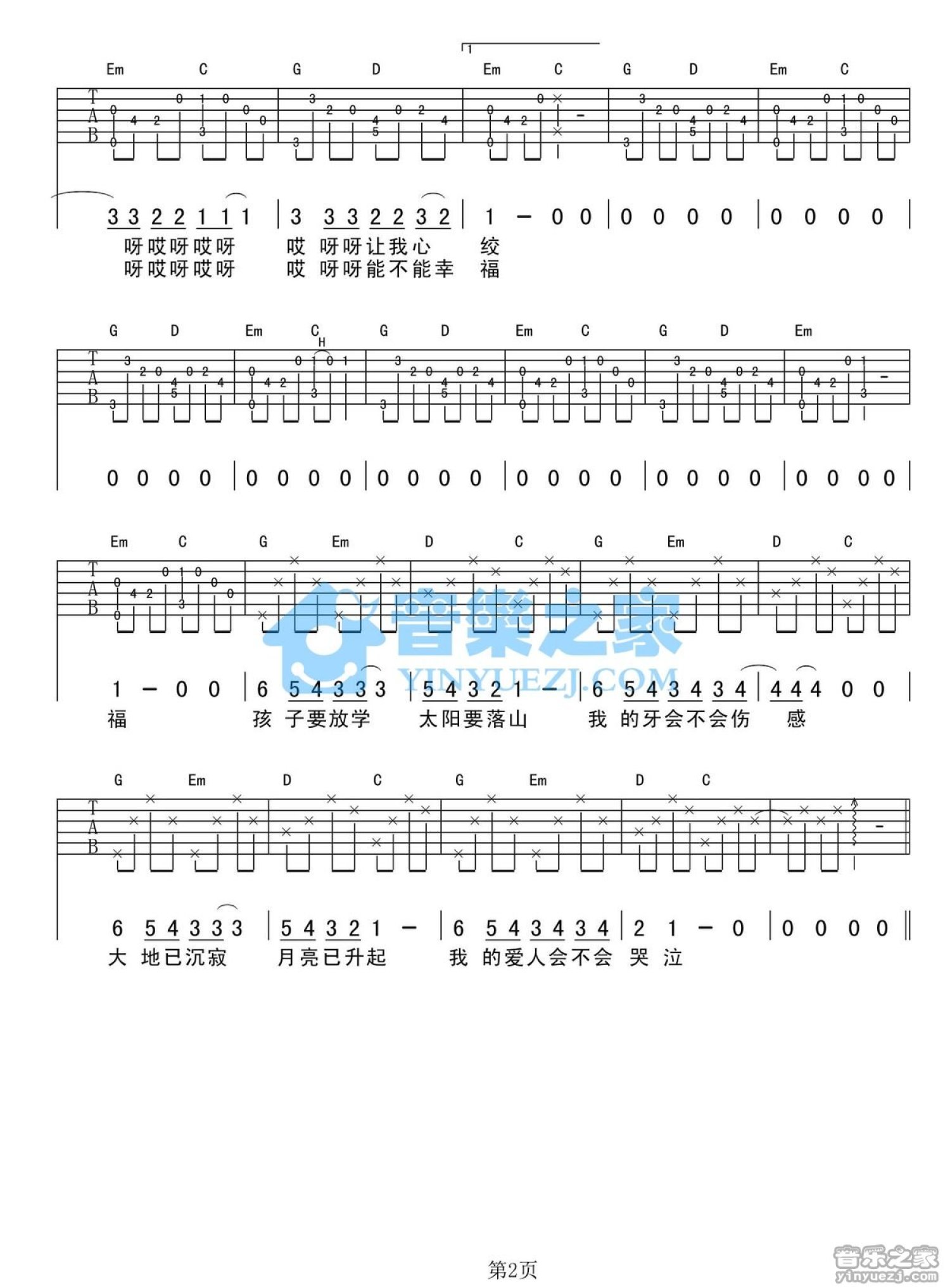 吉他弹唱C调来源:YYZJ829 浏览2021-02-07 08:54发布图谱共2页