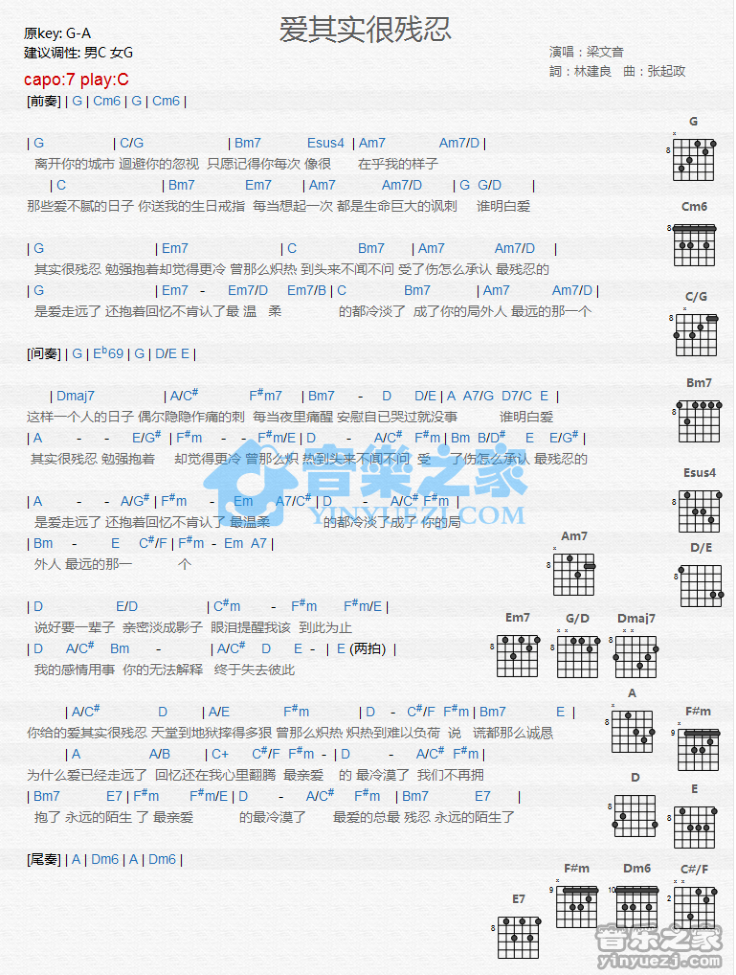 爱其实很残忍吉他谱 - 梁文音 - C调吉他弹唱谱 - 和弦谱