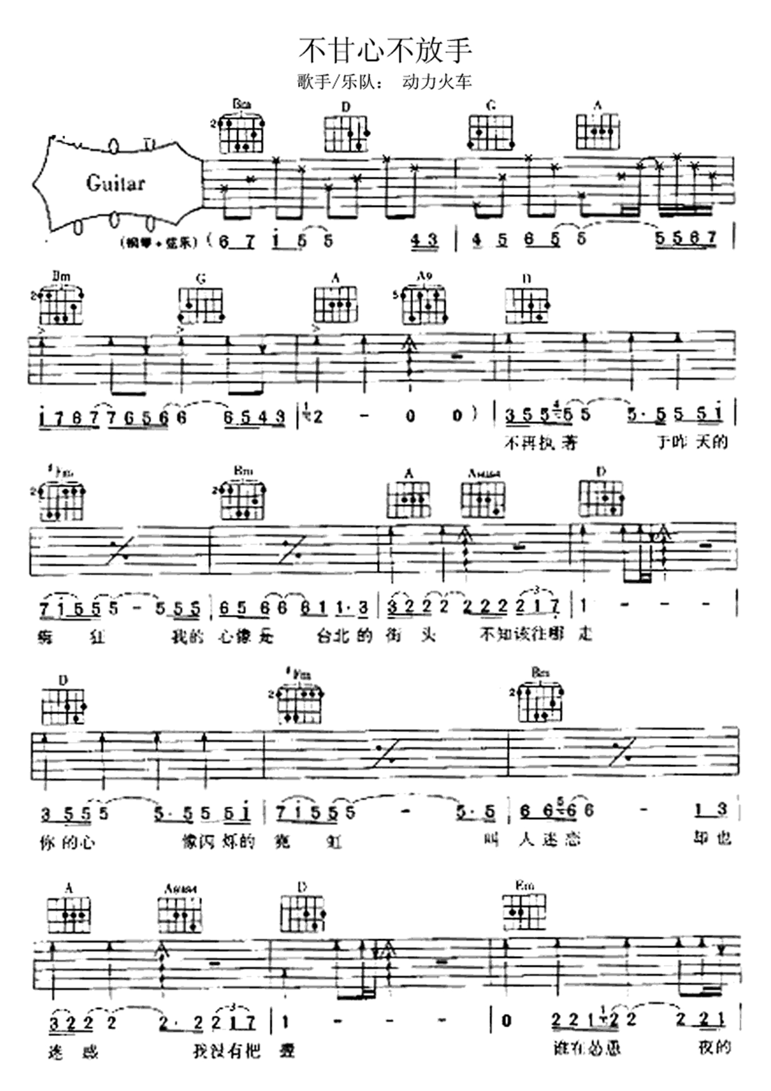 不甘心不放手吉他谱 - 动力火车 - 吉他弹唱谱