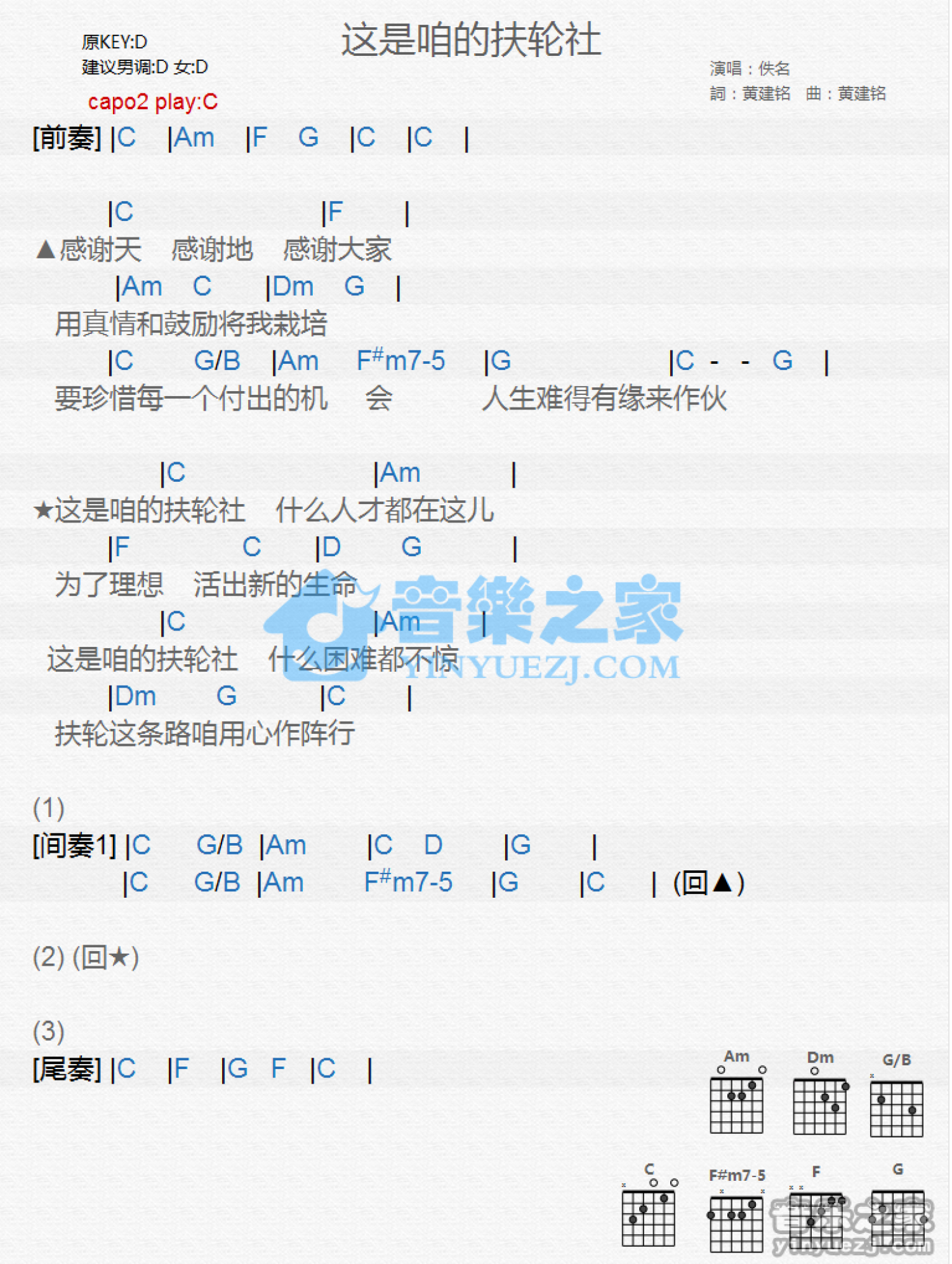 曲谱介绍: C调版 《这是咱的扶轮社》吉他和弦弹唱谱
