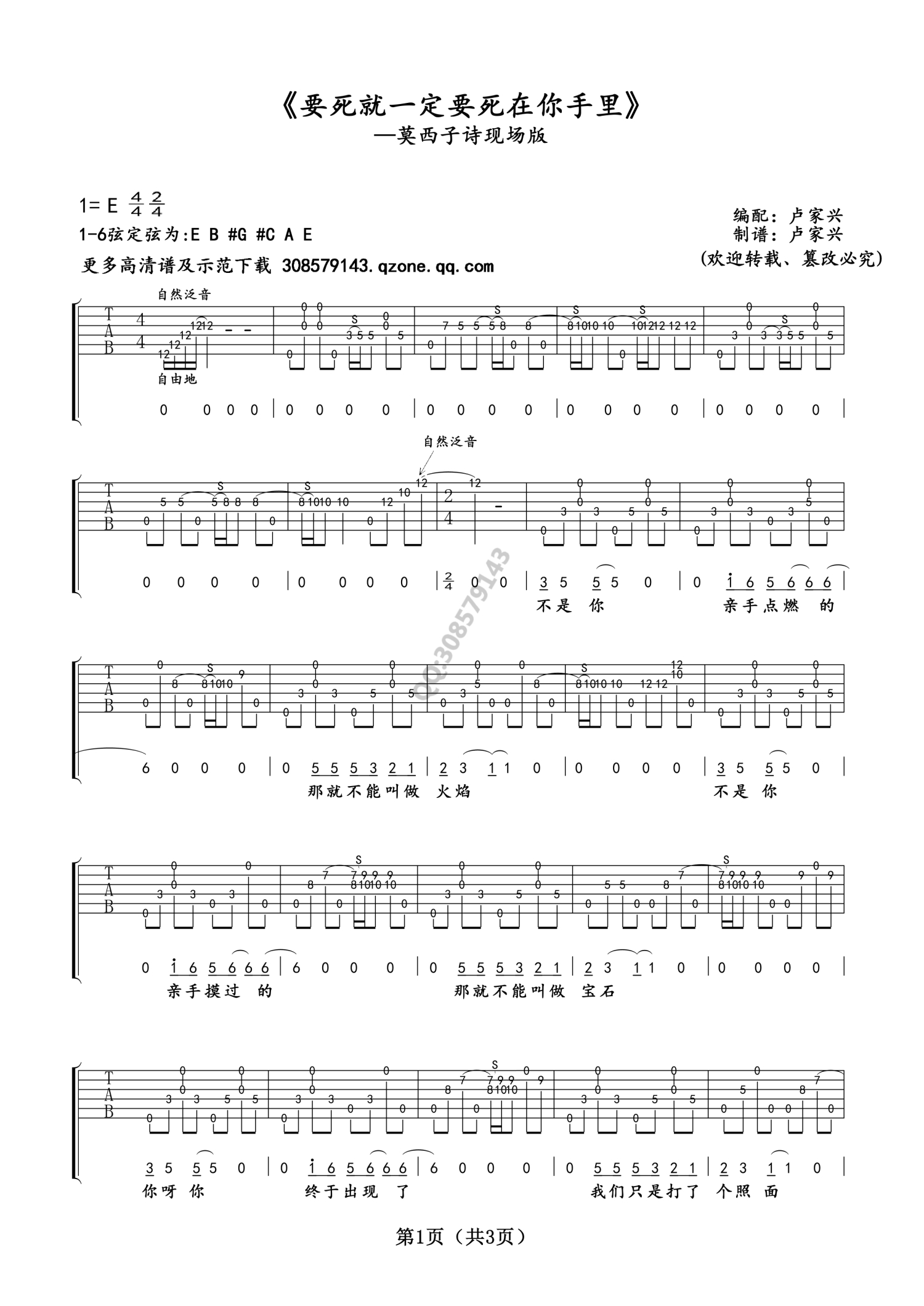 曲谱介绍: 莫西子诗要死就一定要死在你手里吉他谱