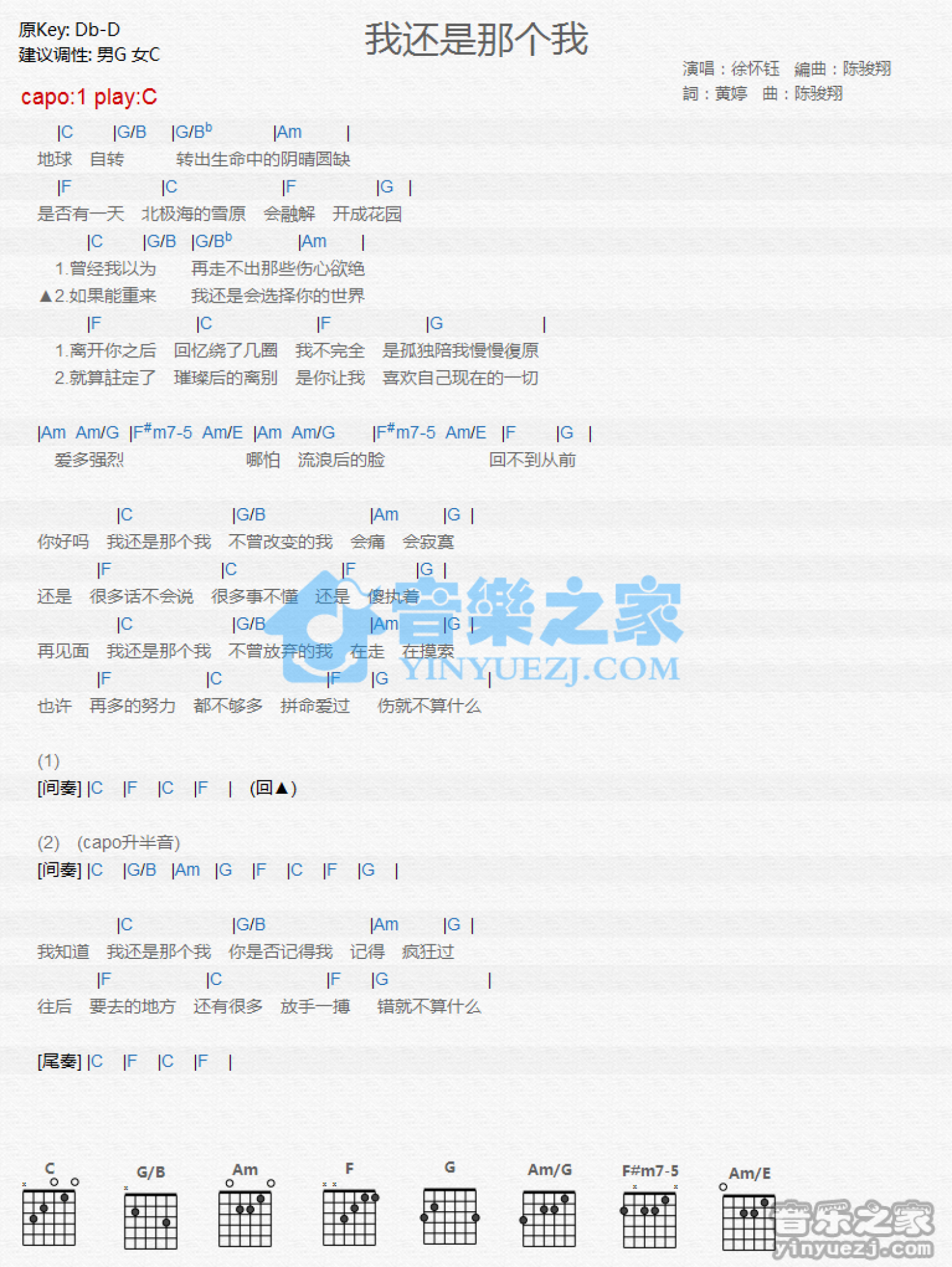 我还是那个我吉他谱 - 徐怀钰 - C调吉他弹唱谱 - 和弦谱