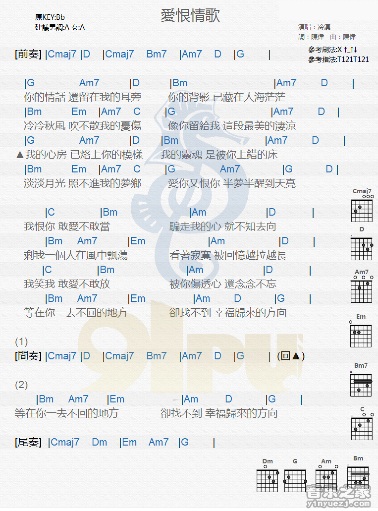 爱恨情歌吉他谱 - 冷漠 - 吉他弹唱谱 - 和弦谱