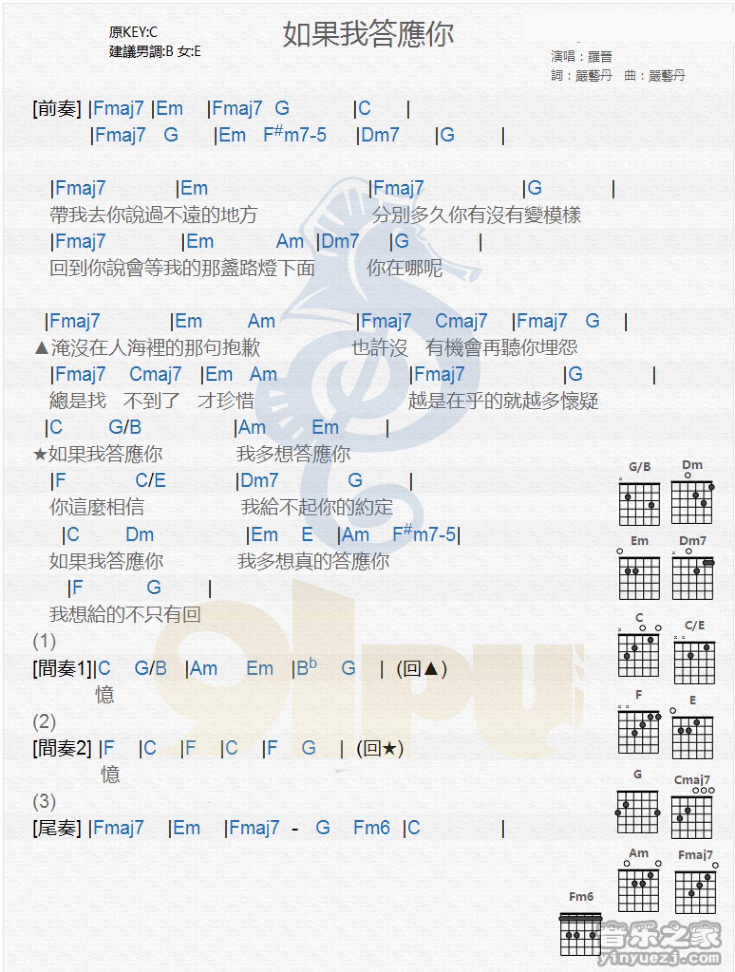 当前位置:琴谱网>吉他弹唱>如果我答应你
