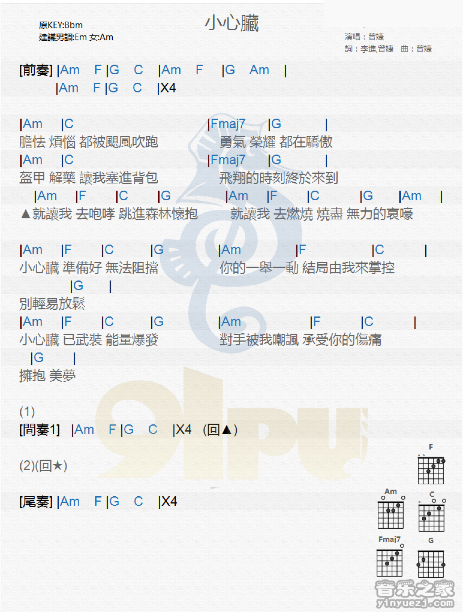小心脏吉他谱 - 曾婕 - 吉他弹唱谱 - 和弦谱