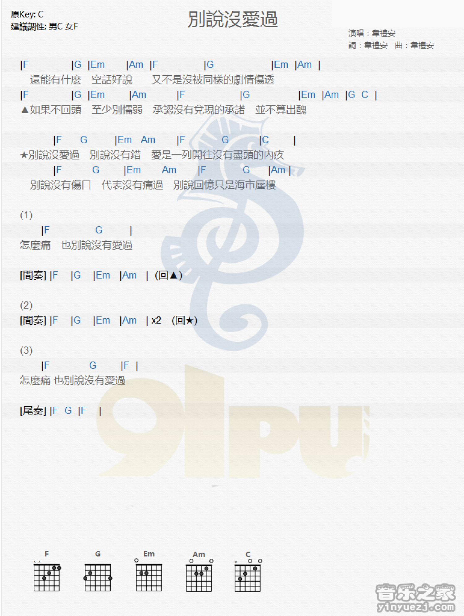 别说没爱过吉他谱 - 韦礼安 - C调吉他弹唱谱 - 和弦谱